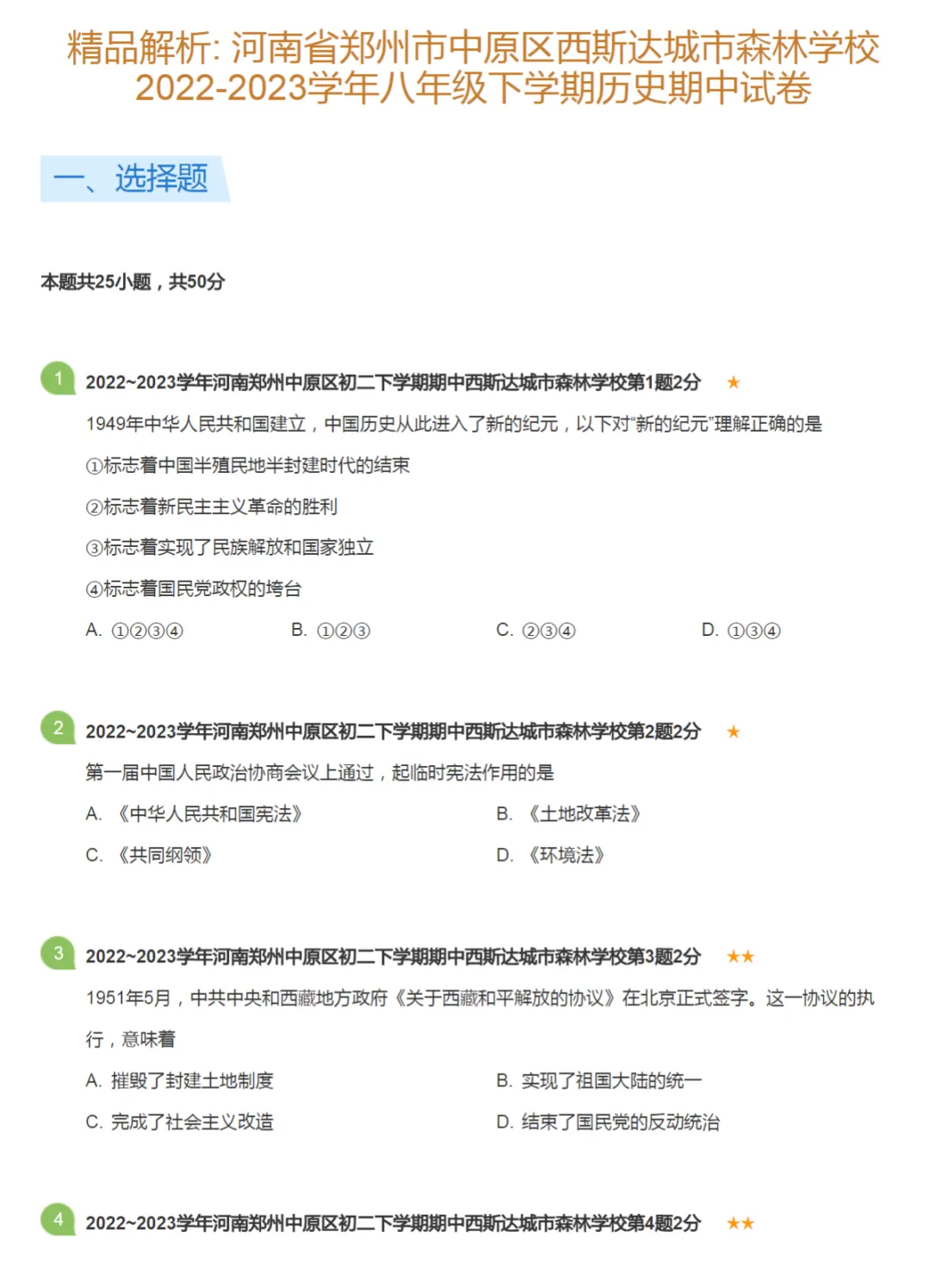 30套2021-2024学年河南郑州初二下学期期中历史试卷及答案解
