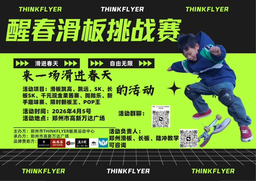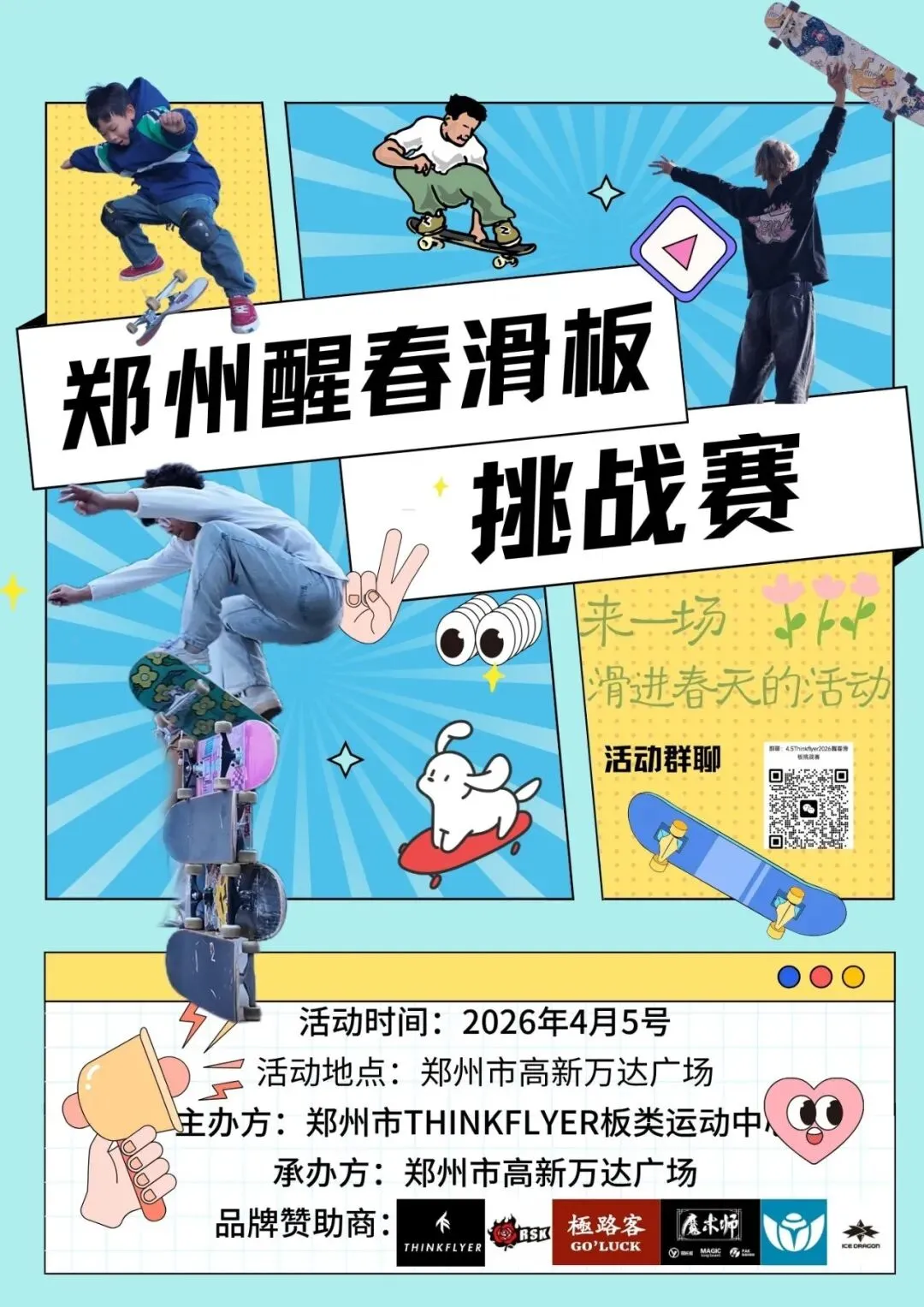 诚挚邀请各位滑板人于2026年4月5日在郑州高新万达广场