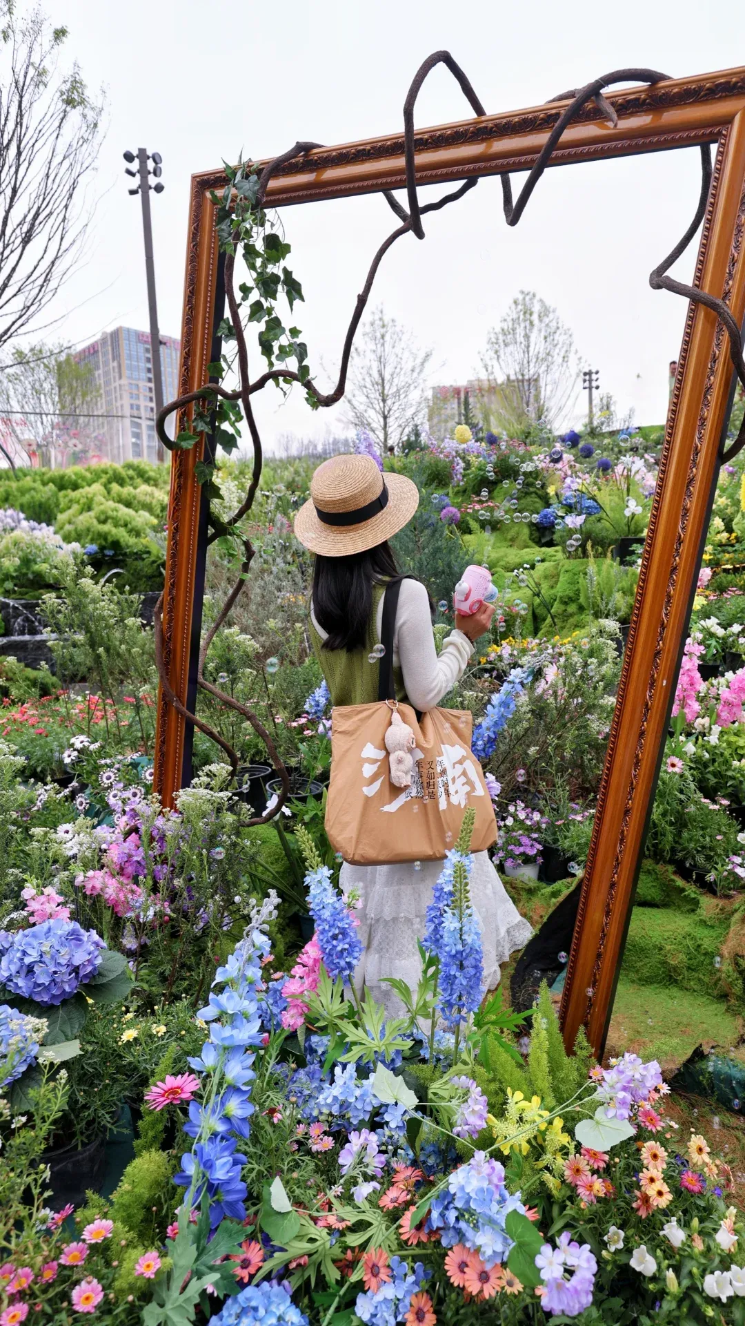 可以自带一个泡泡机,泡泡飘在花海中,梦幻感直接拉满,还能摆脱不知道摆姿势的尴尬,随手抓拍都是治愈系大片,手残党也能轻松拿捏。