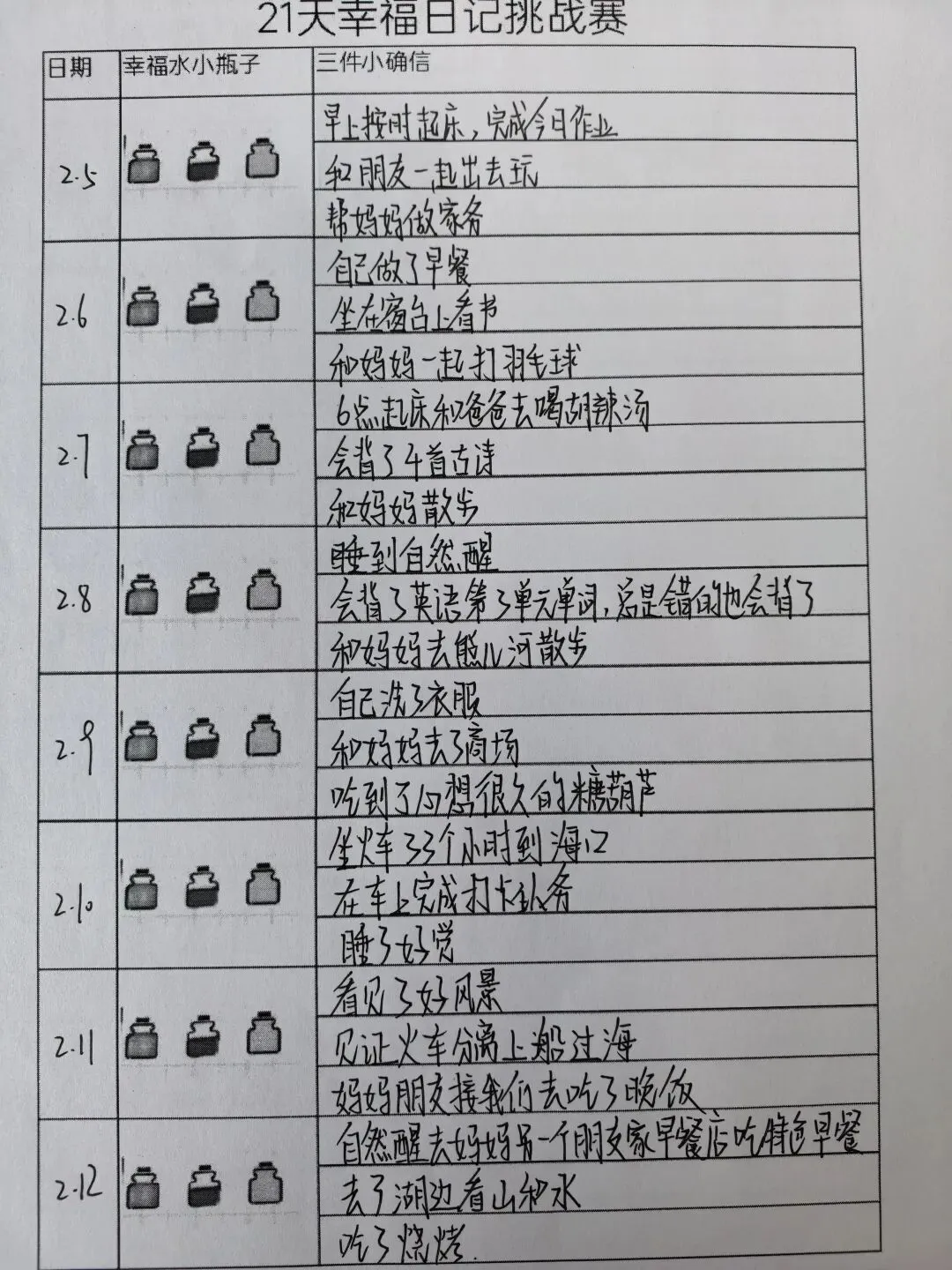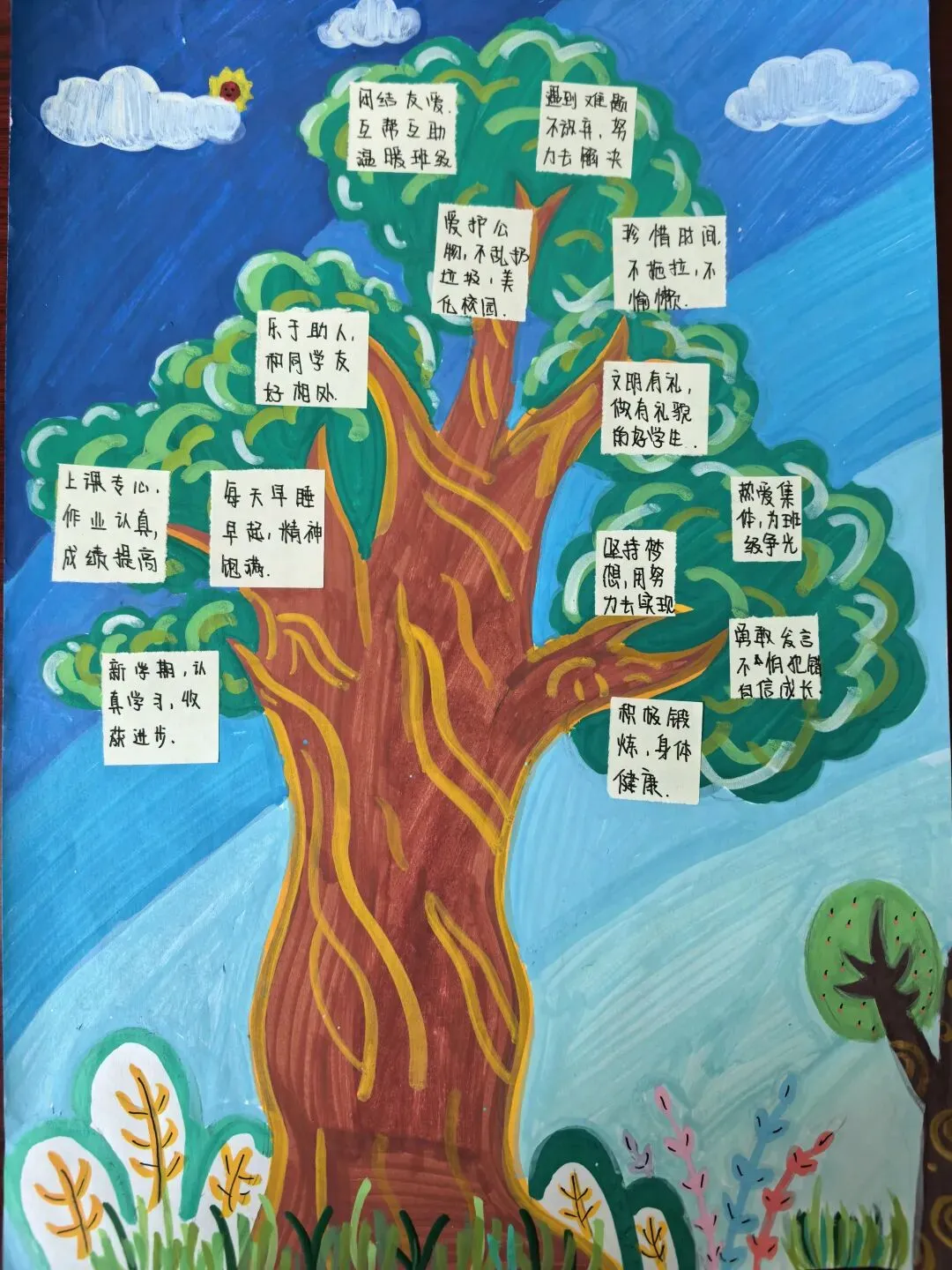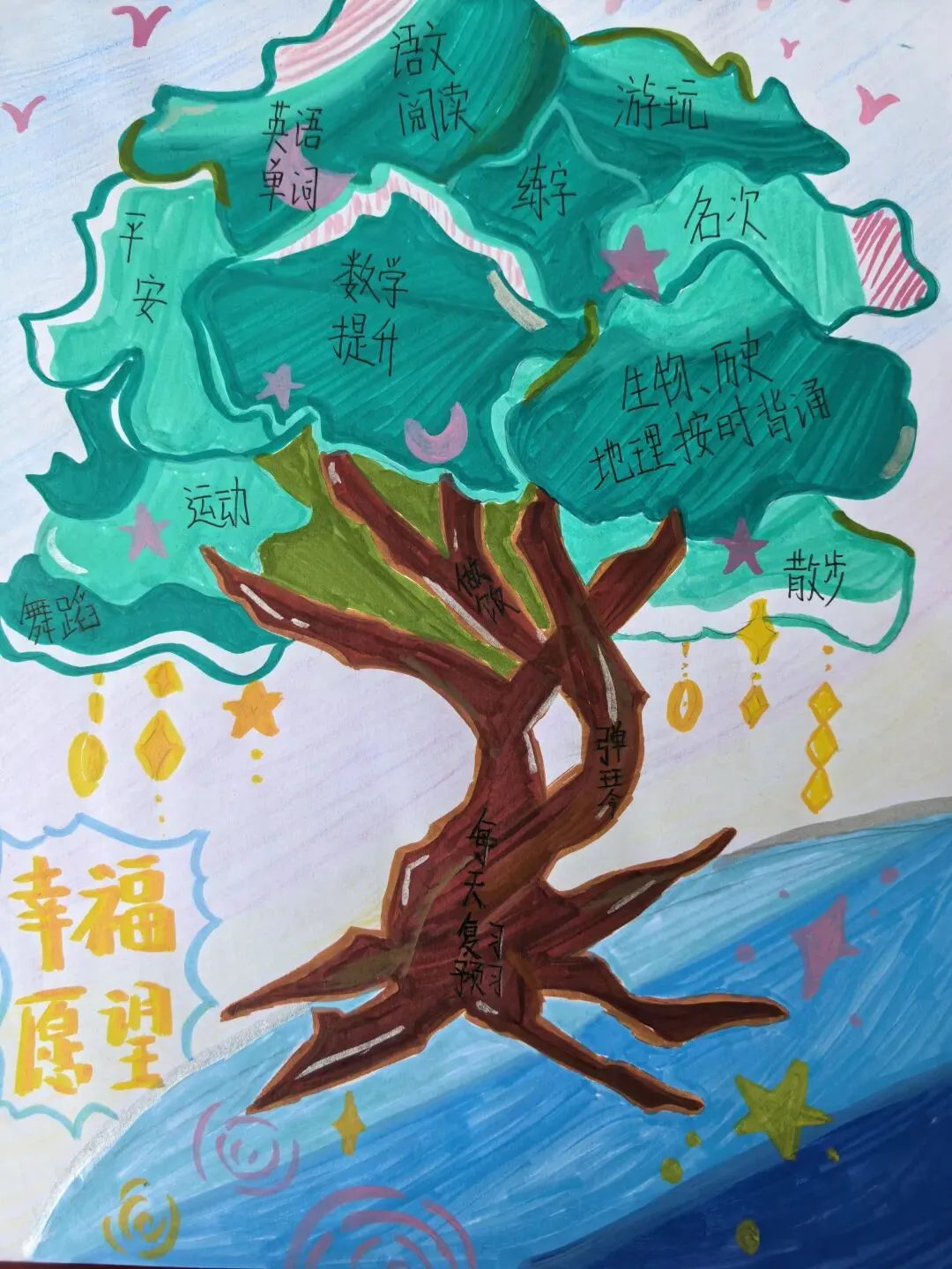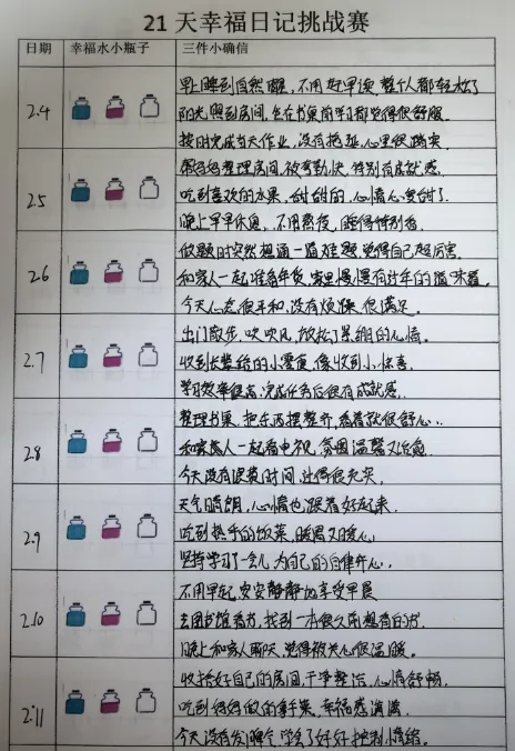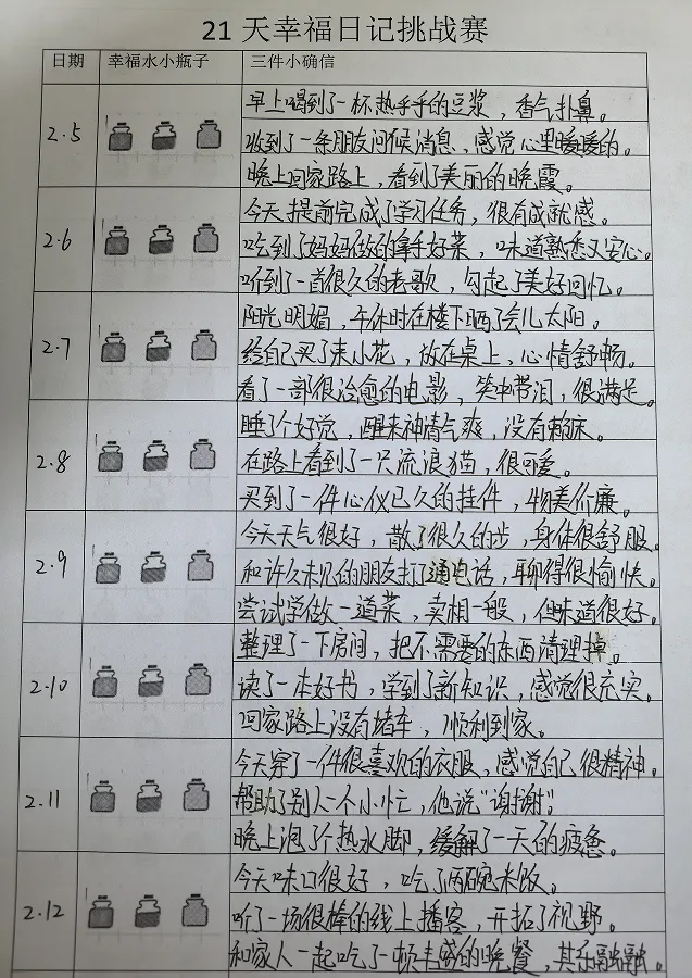 活动期间,学校多元发力、全员覆盖,有序推进五大主题活动。3月1日至10日,发起“一封信”活动,学校发布《致家长一封信》提供家庭教育指导,学生结合自身经历给亲近的人写信,以文字传递温情,感受校园与家庭的关爱。3月5日至13日,各班级召开心理健康主题班会,围绕情绪调节、时间管理等内容,通过互动分享、案例分析等形式,帮助学生舒缓焦虑、调整状态。3月1日起,学校同步开展幸福日记挑战赛,引导学生每日记录3件生活中的“小确幸”,坚持21天培育感恩心态与积极思维。3月1日至6日,组织假期九宫格创作活动,学生以绘画、文字等形式回顾假期美好,汲取成长力量。3月1日至21日,开展新学期幸福树绘制活动,学生通过绘制个人、班级或学校幸福树,寄托新学期期待,为成长赋能。