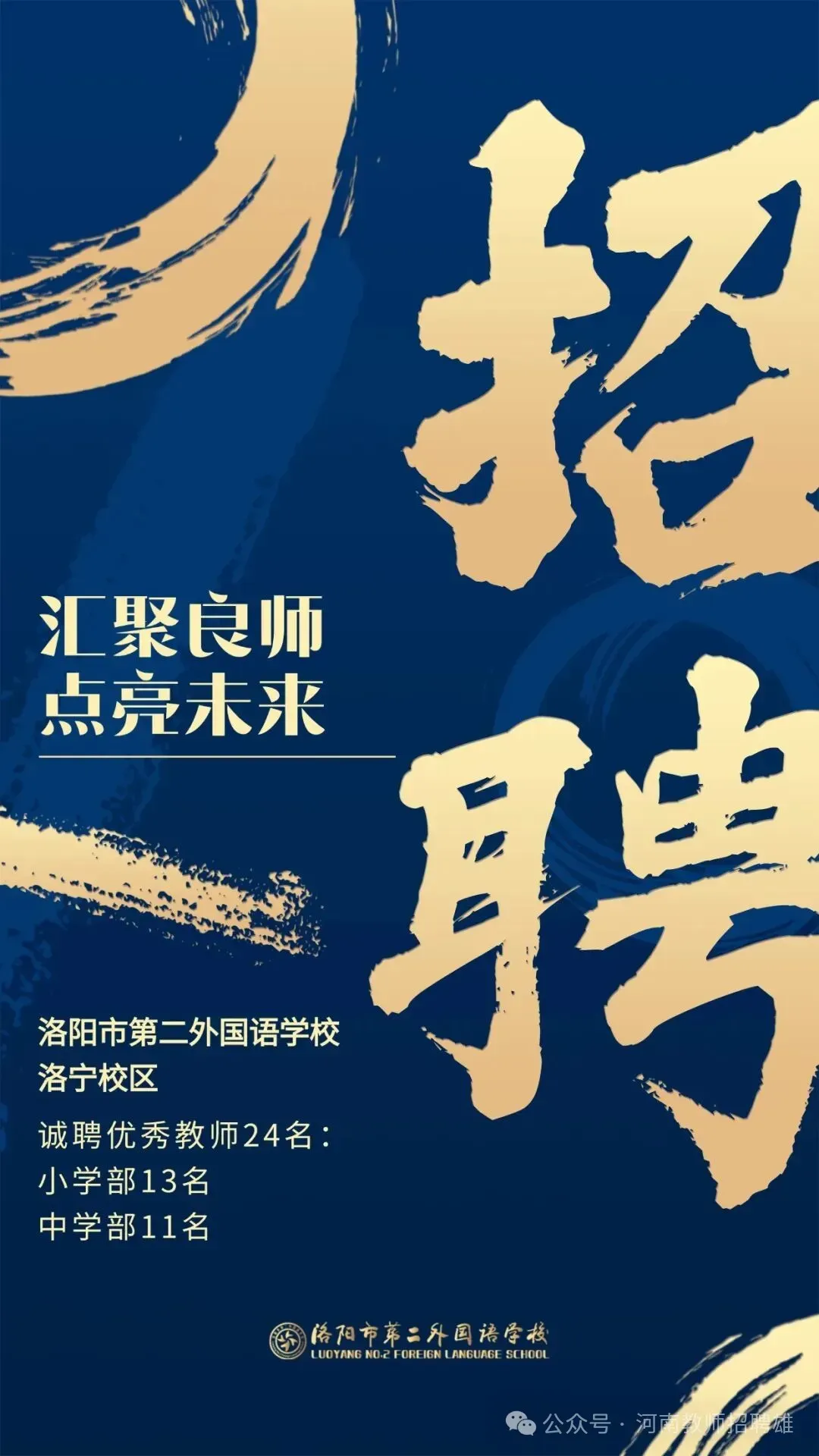 根据教育教学工作需要,洛阳市第二外国语学校洛宁校区(洛宁县城上亿广场西800米)现面向社会招聘优秀教师 24名。