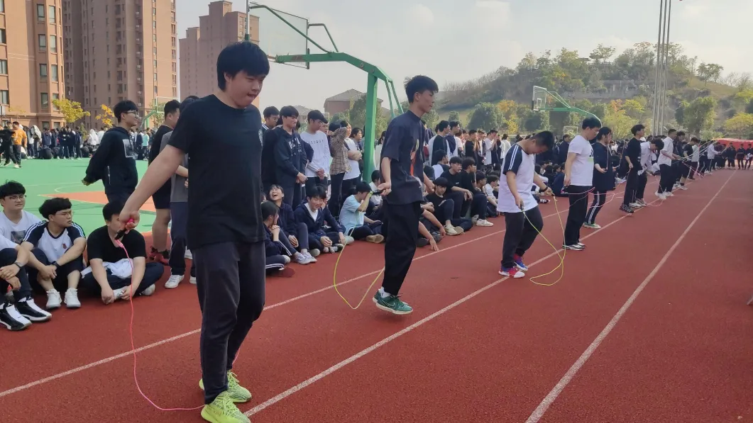 考前热身:先慢跑2圈激活身体,再做弓步压腿、高抬腿、侧压腿,充分活动开腿部肌肉,防止运动拉伤。