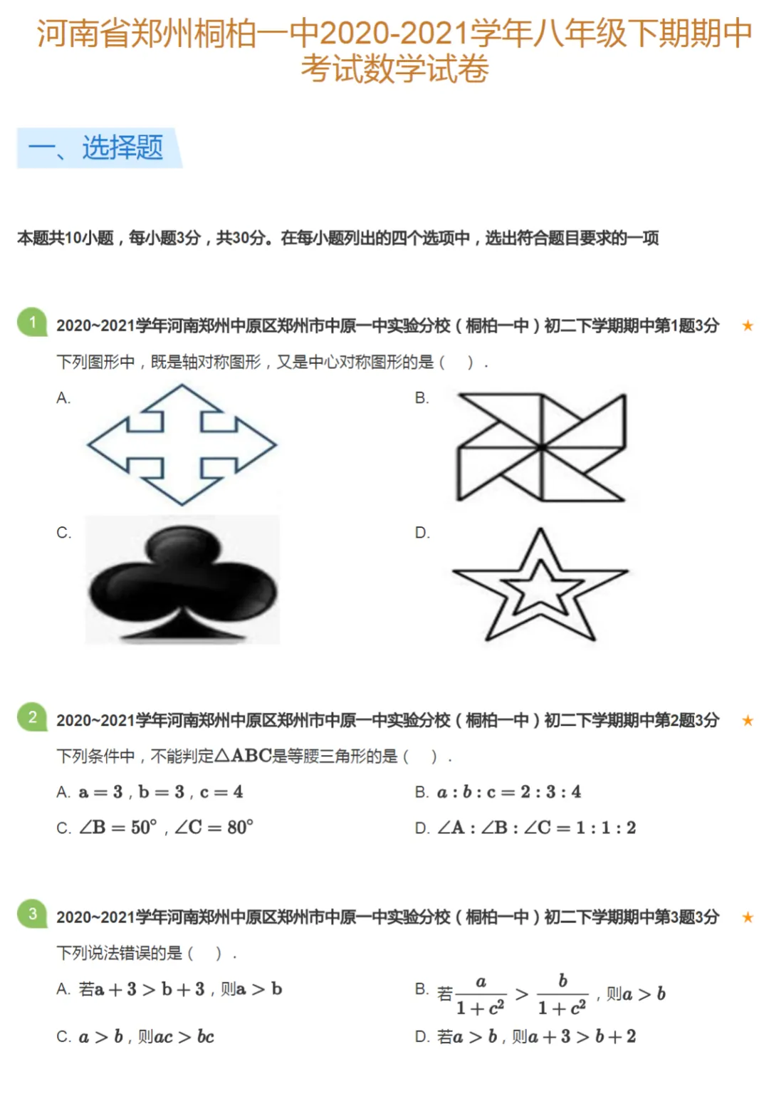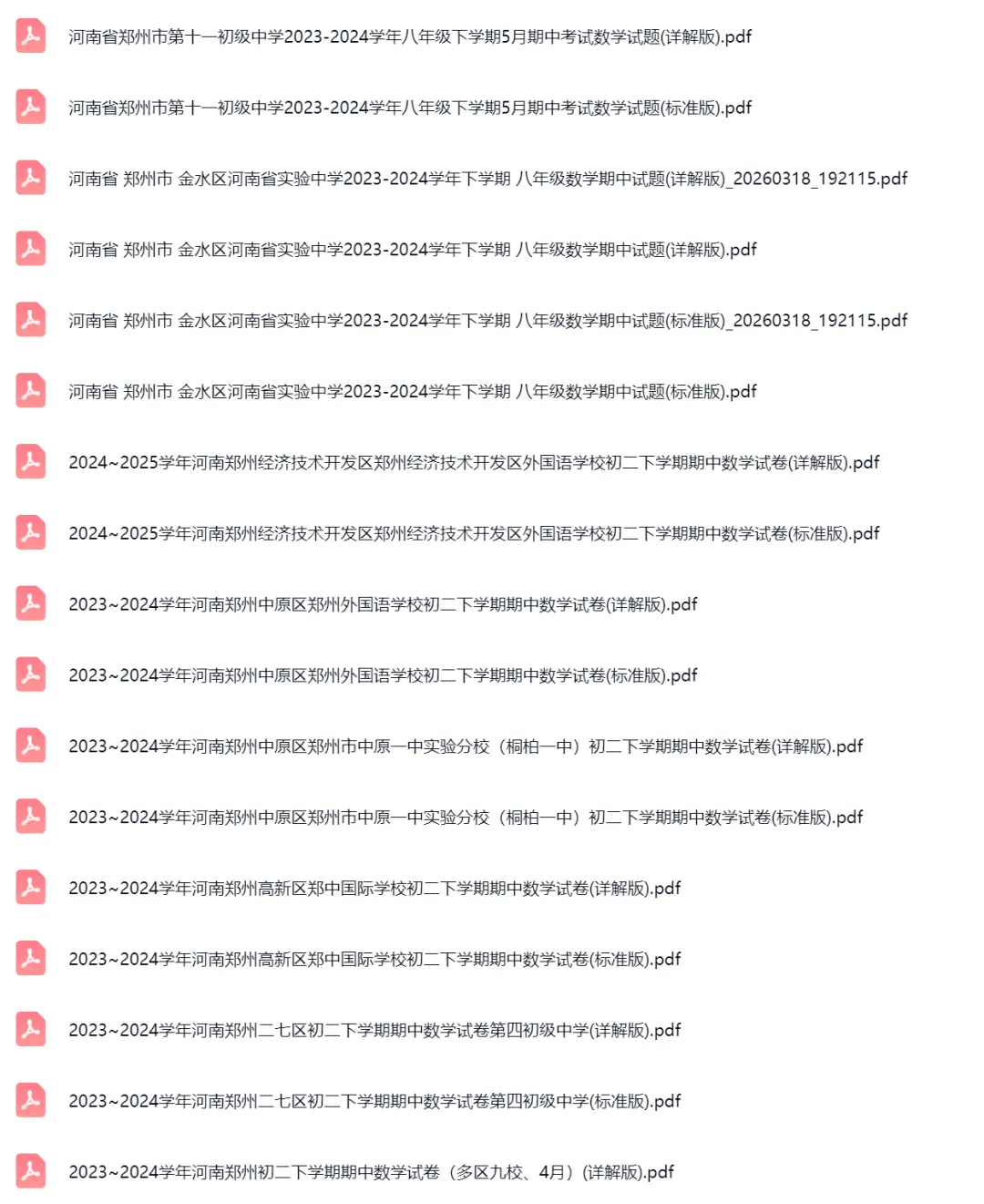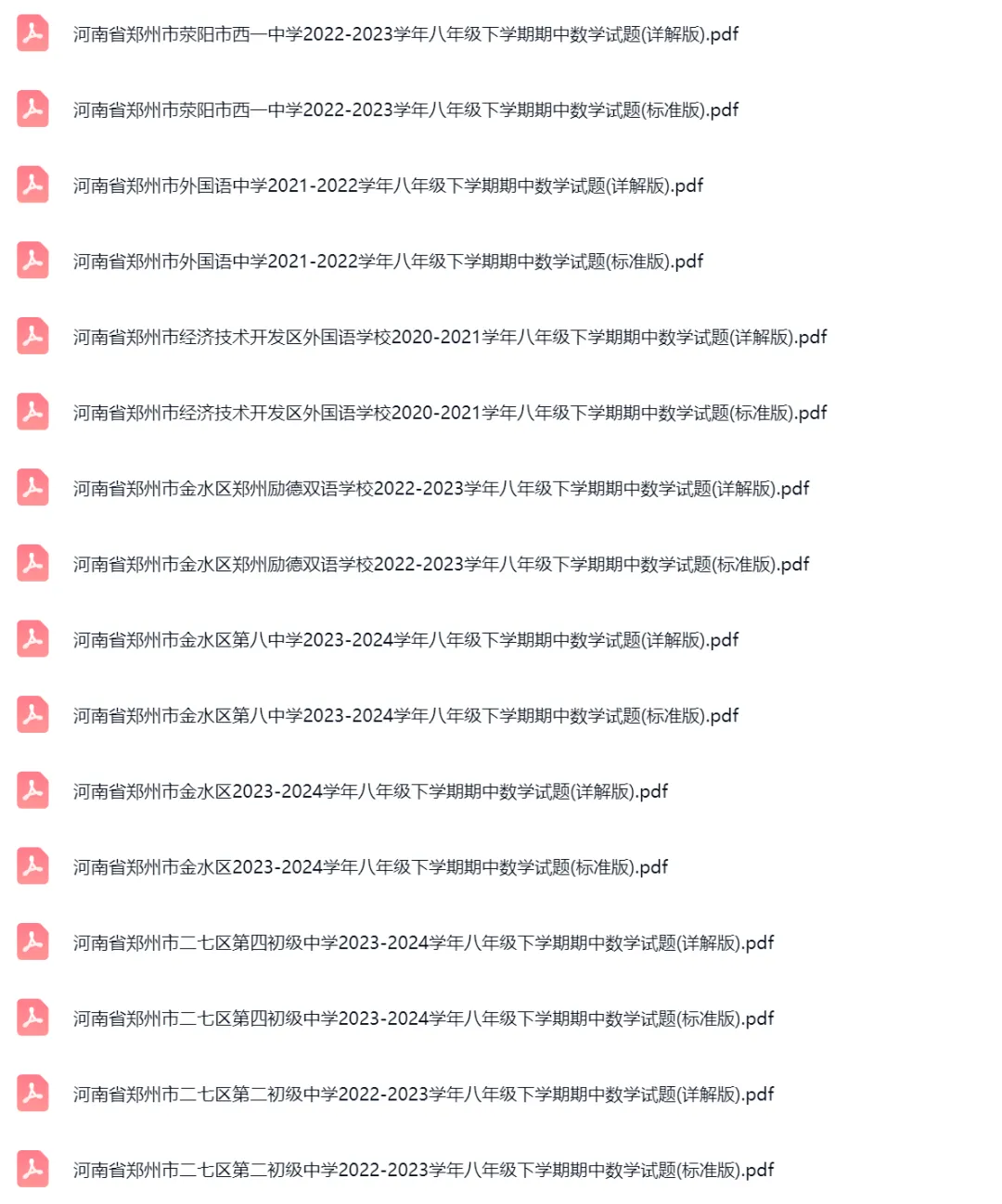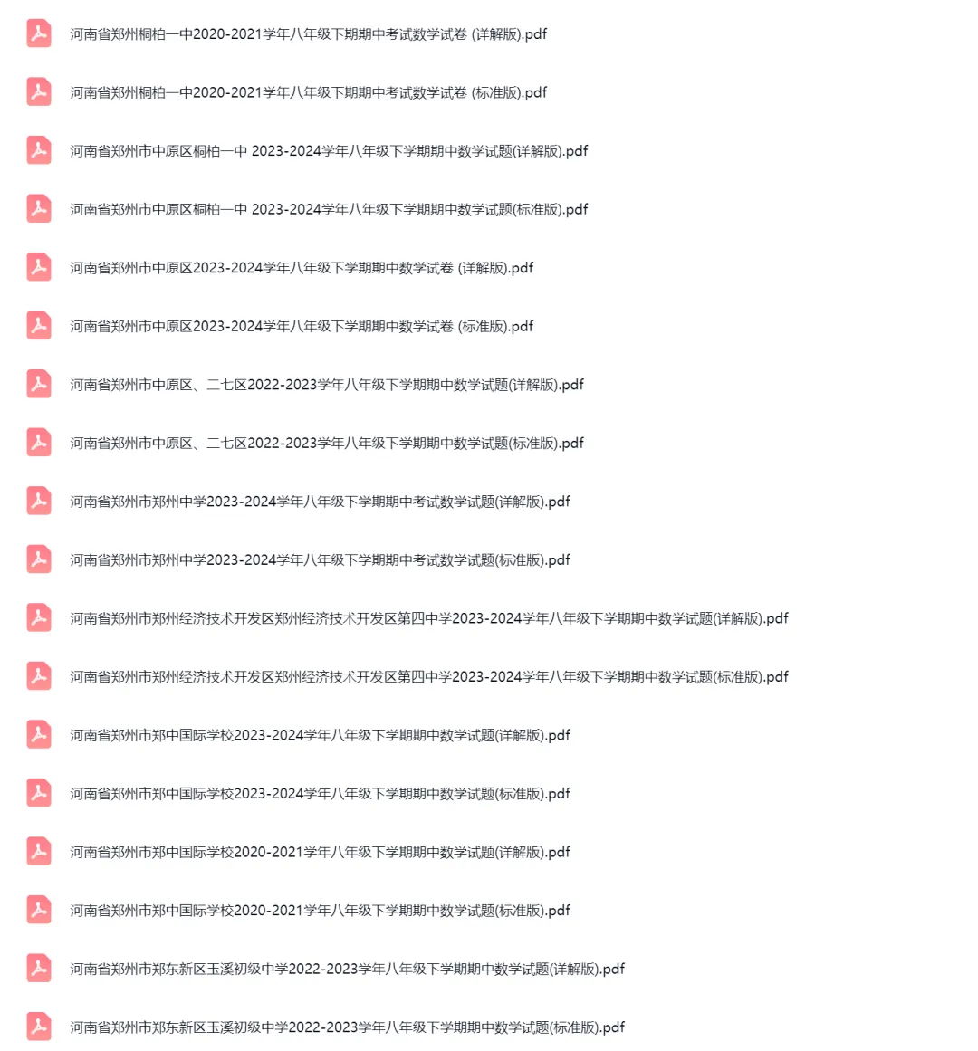 >58套2020-2024学年河南郑州初二下学期期中数学试卷及答案解