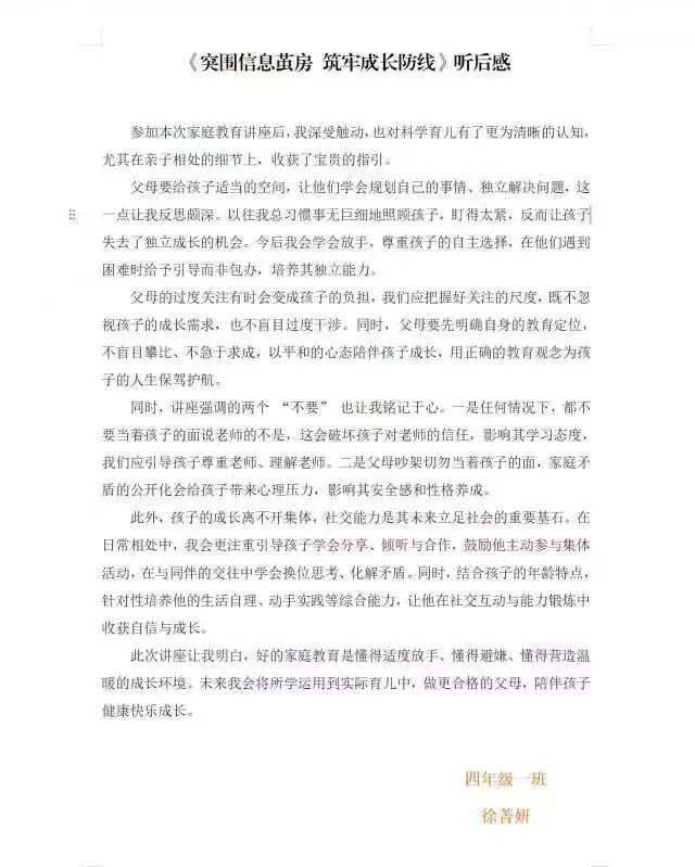 此次分享会让家长对家校协同有更清晰认知,为家庭教育工作提供方向。未来学校将持续邀请专家开展系列分享,助力家庭科学育儿,培育时代新人。