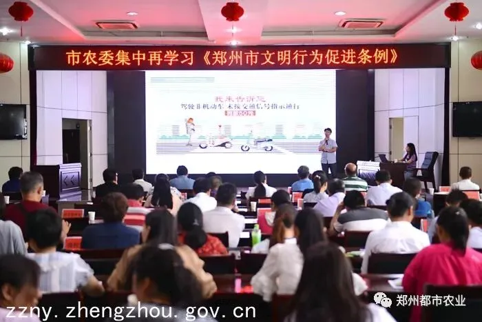 为助力全国第十一届民族运动会,喜迎新中国成立七十周年。7月10日上午,市农委集中组织《郑州市文明行为促进条例》再学习。市农委副主任李新有,党组成员郑深怀、徐宝龙、马继军和部分县处级干部以及机关各处室、委属各共创单位代表共计150余人参加。