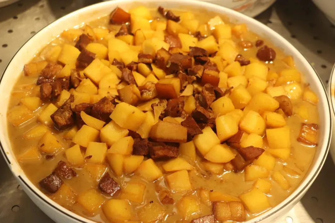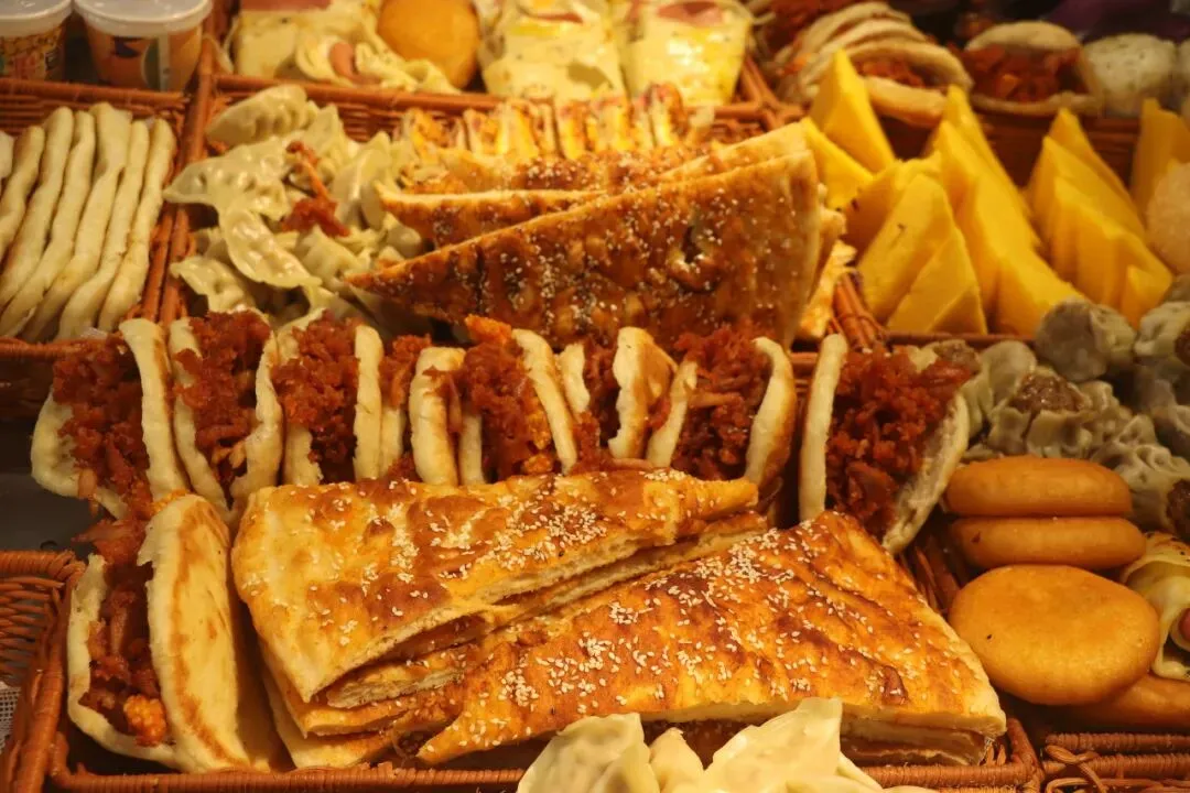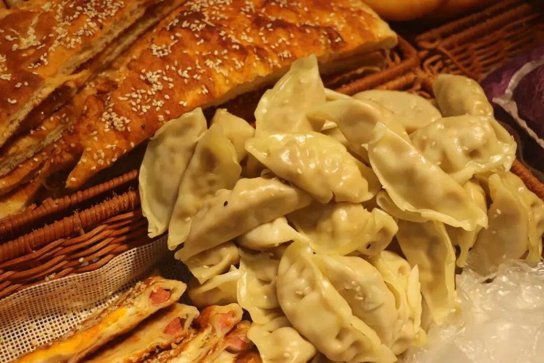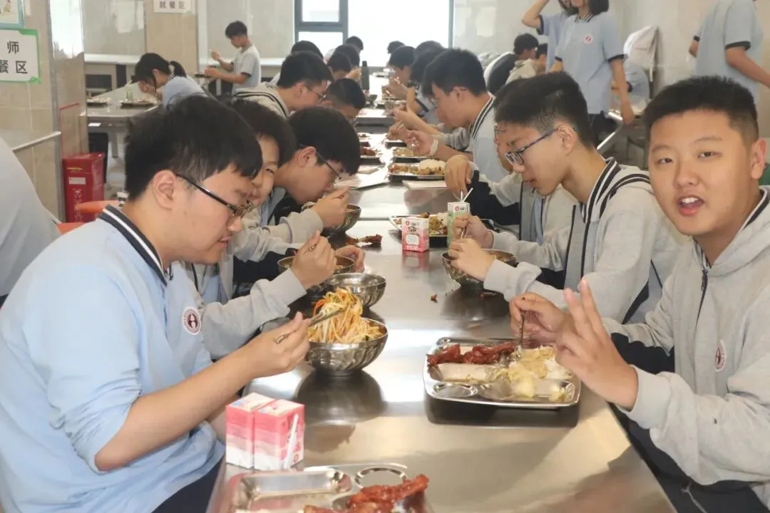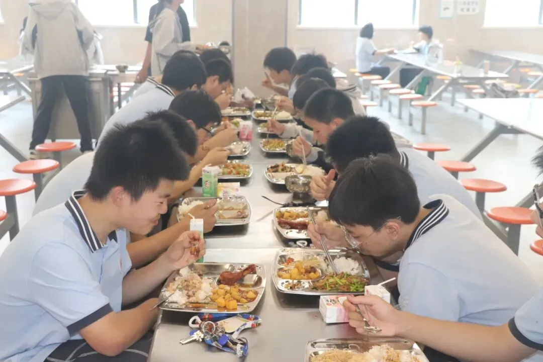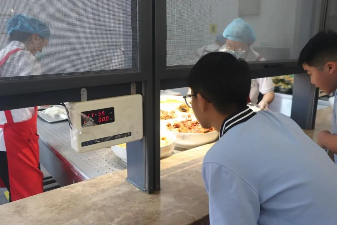 焖子炒肉片(焖子80g肉片80g)、酸辣土豆丝(土豆80g青红椒20g)、酱香饼、馒头