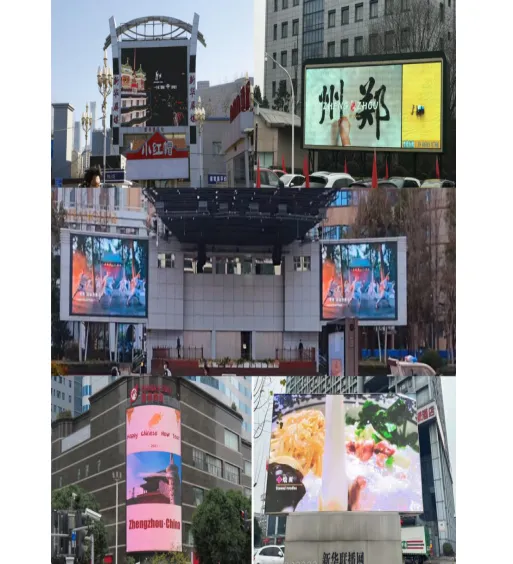拼版照片:北京、上海、杭州、福州、长沙等城市核心区域的户外屏幕播出郑州“城市家书”