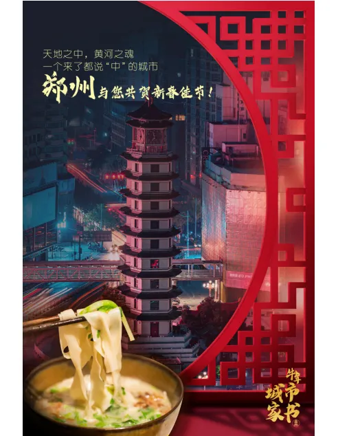 除夕当天,郑州“城市家书”海报还和其他17个城市一道在新华网客户端上推出,年味浓郁的二七塔、诱人的烩面,获得近150万的浏览量。网民评论:“越来越想家乡的年味,难以忘怀”。