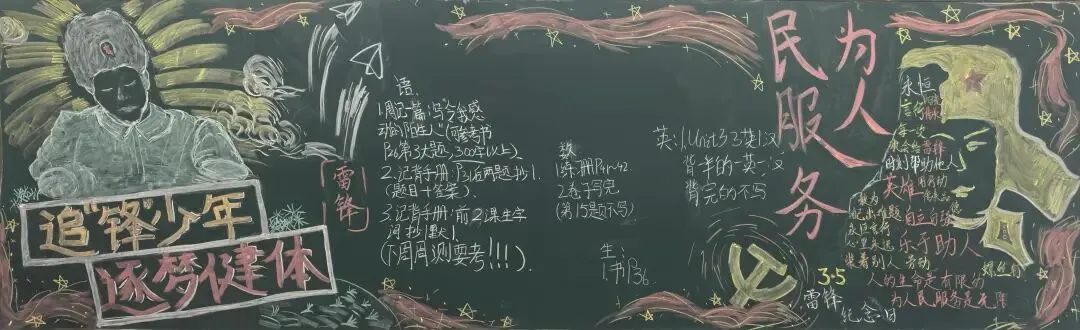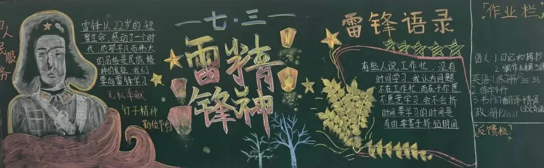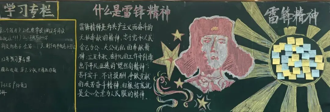在“学雷锋”主题黑板报评选中,同学们用笔描绘雷锋事迹,书写心中感悟,一幅幅精美的作品,成为校园里的一道亮丽风景。