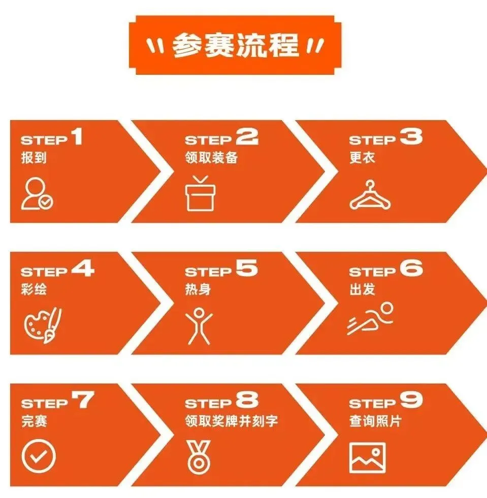 每位参赛小选手领取到的装备包含:参赛包、参赛服、手套、头带号、场次手环、电子计时手环等,家长带着孩子现场有序领取即可。