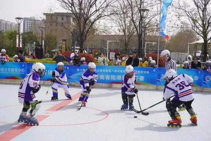 头戴“头盔”、身穿“铠甲”、脚踩“风火轮”……轮滑球小将们酷酷的装备让人眼前一亮,只见他们手持球杆,在场上灵活穿梭、配合默契,诠释出轮滑球运动的独特魅力。据了解,单排轮滑球作为冰球的衍生运动,是一项对抗性强、观赏性高的团体运动项目,其魅力在于运动员细腻精巧的接控传球技术,衔接巧妙的团体配合,速度极快的攻防转换和永不言弃的拼搏精神。所使用的场地、装备、规则、技术技巧都和冰球非常近似。正因如此,单排轮滑球作为类冰雪项目在我省这个内陆省份开展得亦是火爆。河南省于2018年开始推广轮滑球项目,并得到河南轮滑爱好者的大力追捧,目前中小学陆续在校园建设专业轮滑球场地数十块,高校参与度也逐年递增,赛事规模已从开始的几支队伍参加,发展到现在的30多支队伍参与其中。