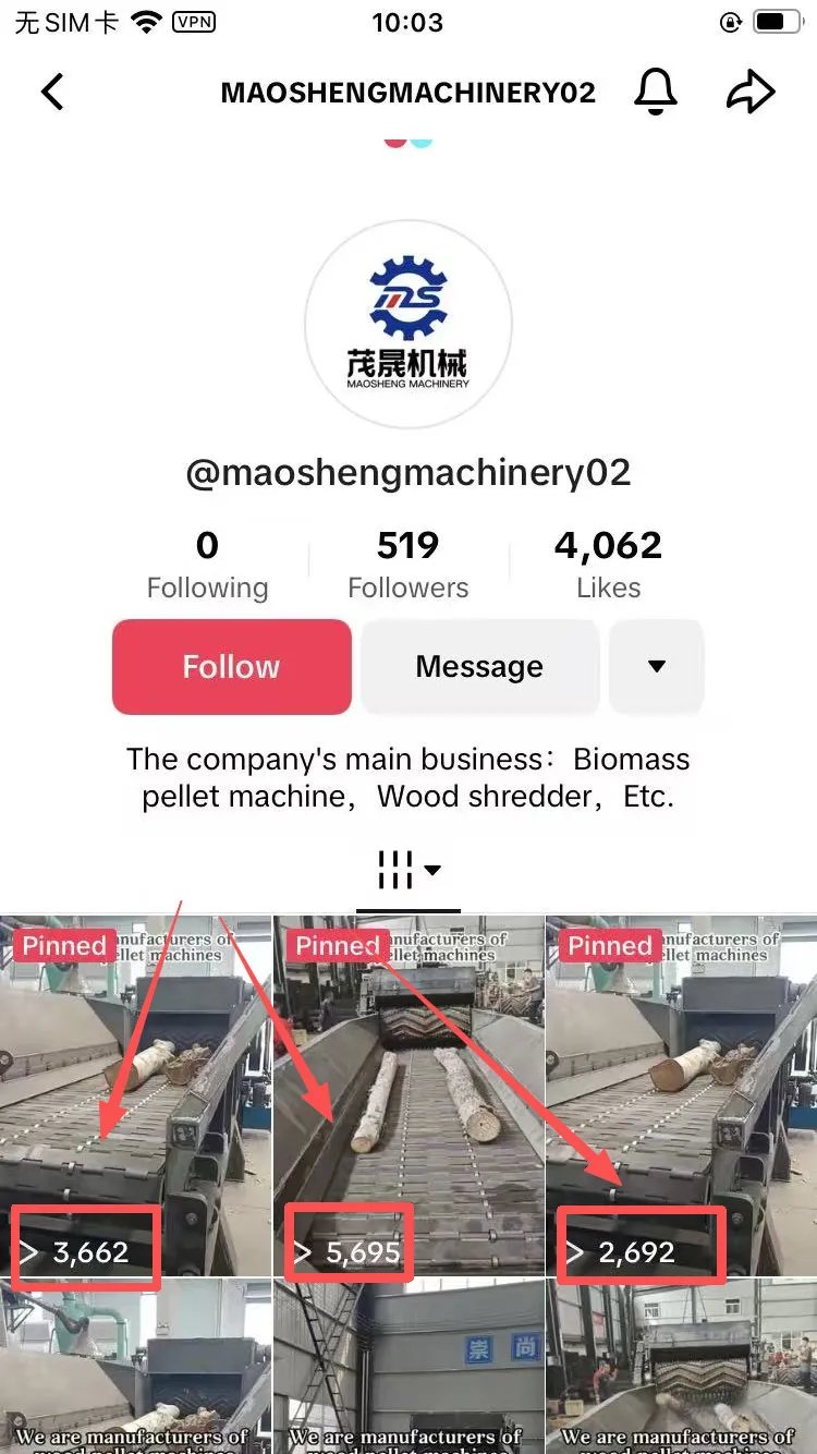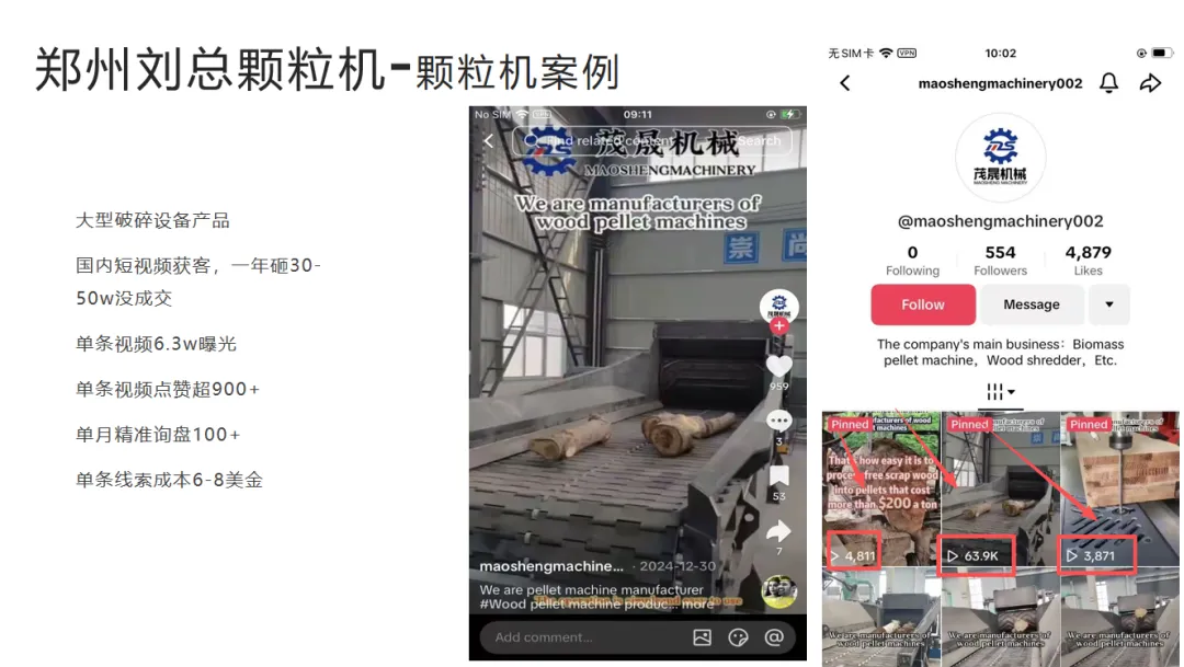 做Tiktok的拥有曝光潜力,颗粒设备的案例,视频给客户带来了巨大流量。