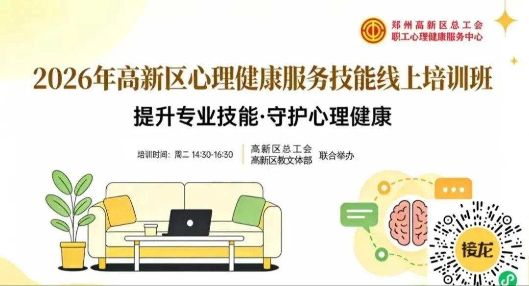 此次线上心理培训,是郑州高新区总工会践行 “娘家人” 职责、关爱职工身心健康的具体举措,下一步,区总工会将持续聚焦职工多元需求,深耕心理健康服务领域,推出更多贴合职工工作生活、实用性强的心理健康专题活动,不断完善职工心理关爱服务体系,引导广大职工以更积极、健康的心态投入工作与生活。(谈盼攀)