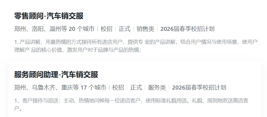 服务顾问助理-汽车销交服