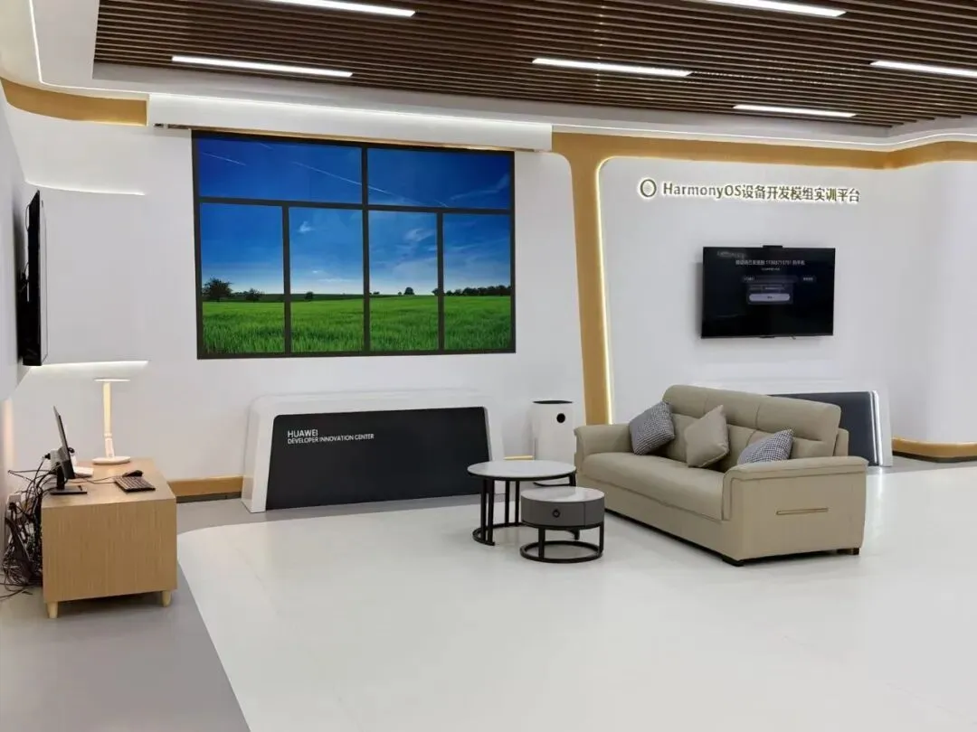展厅以“产教融合、技术赋能”为核心,设有鸿蒙生态、智能家居等多个功能区,并配备专业实训平台,直观展示技术应用。同时呈现师生成果与校企合作亮点,营造良好育人氛围。实训室涵盖鸿蒙·物联网和大数据两大核心专业,配置华为系列实训设备及鸿蒙开发套件,对标产业标准,贴合行业真实场景,满足多专业核心实训需求。