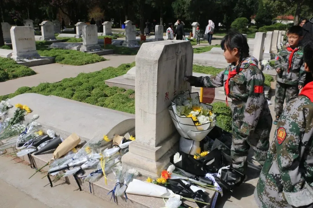 少先队员们走近烈士墓区,墓碑上镌刻着烈士们的姓名、籍贯和生平事迹。孩子们纷纷在烈士墓前鞠躬致敬,表达对先烈们的敬意和怀念。