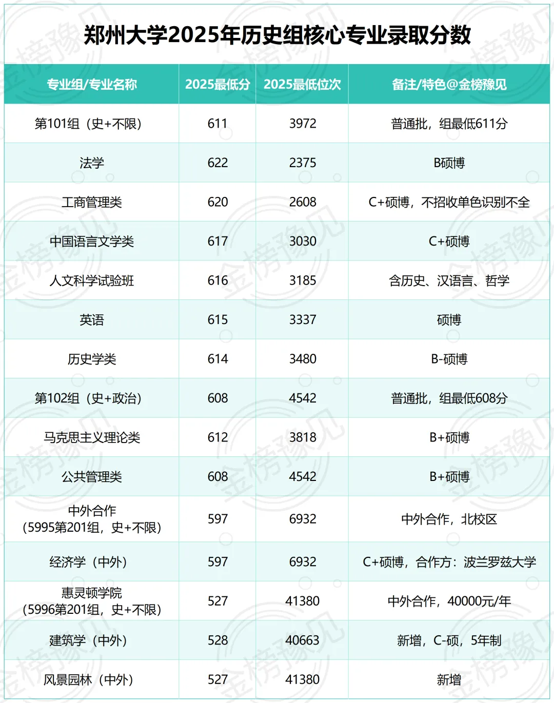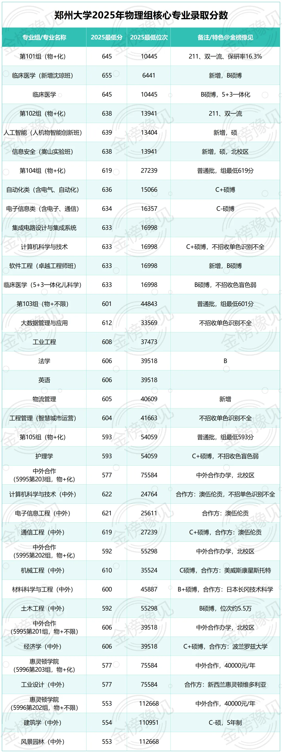 以下数据来自郑州大学2025年河南省录取官方数据,位次为考生填报的核心参考。