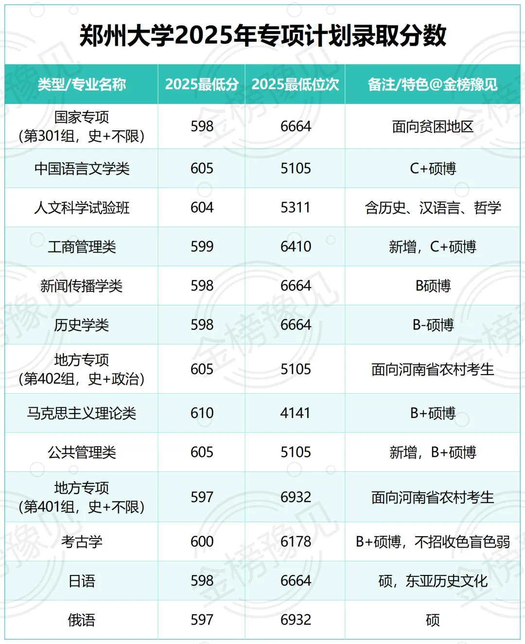 对于符合国家专项或地方专项条件的考生,郑大提供了宝贵的“降分通道”。以下是历史类的完整数据。
