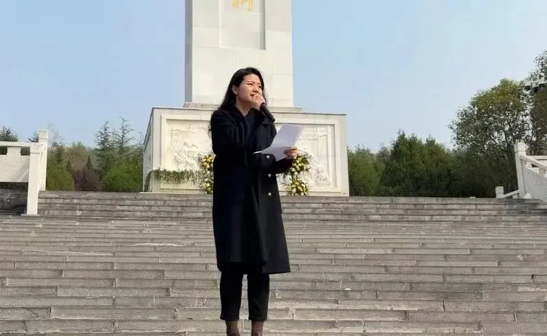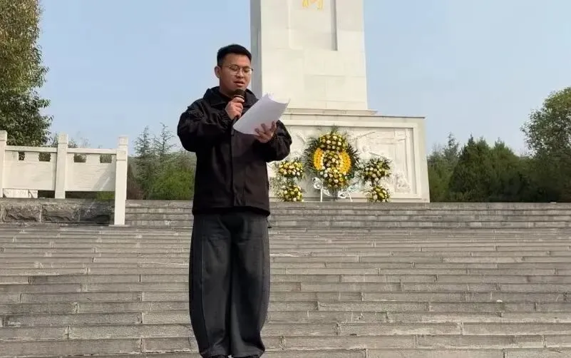 默哀仪式结束后,党政办副主任张隆媚发表深情的缅怀致辞,言辞间饱含对革命先烈的敬仰与追思,深刻阐释了英烈精神的时代内涵,号召全体学子以英烈为榜样,铭记历史、不忘来路,将对先烈的怀念转化为刻苦学习、报效国家的不竭动力,以青春之我担时代之责,让红色基因融入血脉。