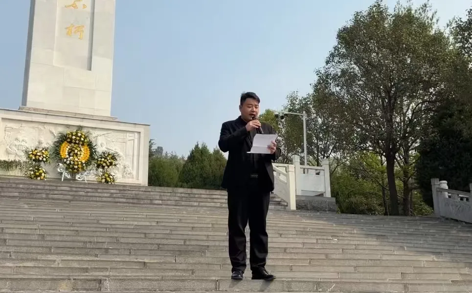 清晨8点30分,党政办副主任张隆媚、学生处常务副处长王雪涛、学生处副处长陈佳、校团委副书记刘旭晨、学生会指导老师吕浩阳与团员代表、学生干部代表身着整齐服装,在学校统一集合、整装出发,向着新密市烈士陵园有序前行。一路肃穆,满含敬意,师生们怀着对革命先烈的无限追思,踏入庄严肃穆的烈士陵园,一场深刻的红色洗礼就此展开。
