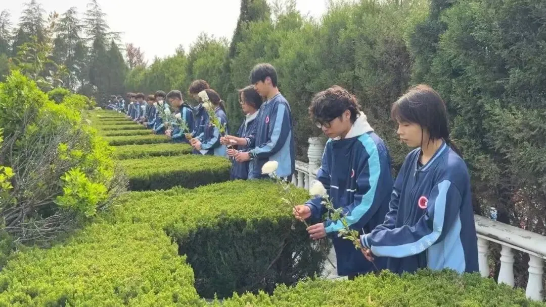 最后,学校领导代表向烈士纪念碑敬献花篮,以庄重的仪式表达对革命先烈的深切缅怀。学子们手持洁白的鲜花,排着整齐的队伍,依次走到烈士墓碑前,小心翼翼地敬献鲜花,轻轻擦拭墓碑上的尘埃,以躬身实践的方式表达对英烈的缅怀与敬仰。每一个动作都饱含深情,每一次驻足都满含追思,在亲手祭扫的过程中,学子们更深刻地感悟到英烈精神的重量,读懂了“岁月静好,只因有人负重前行”的深刻含义。