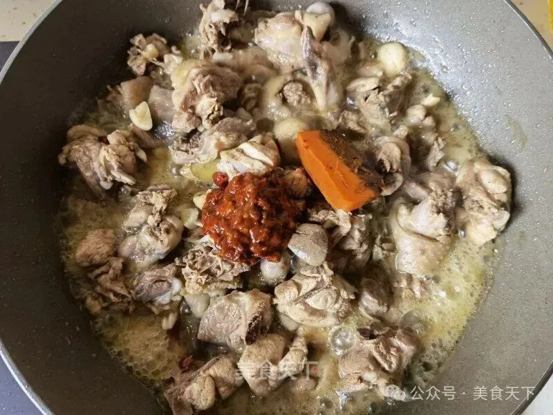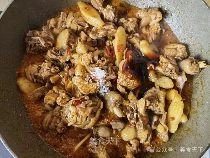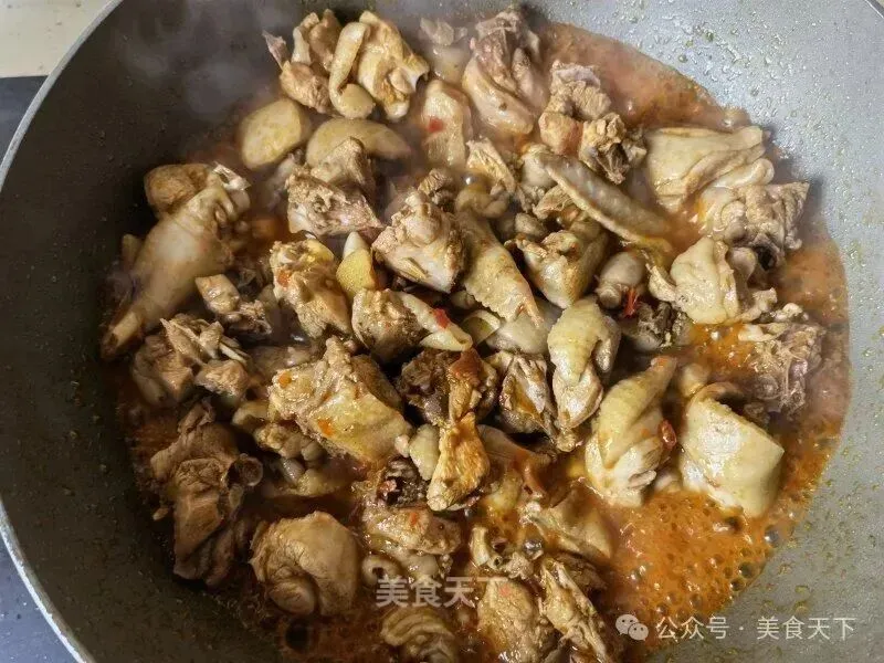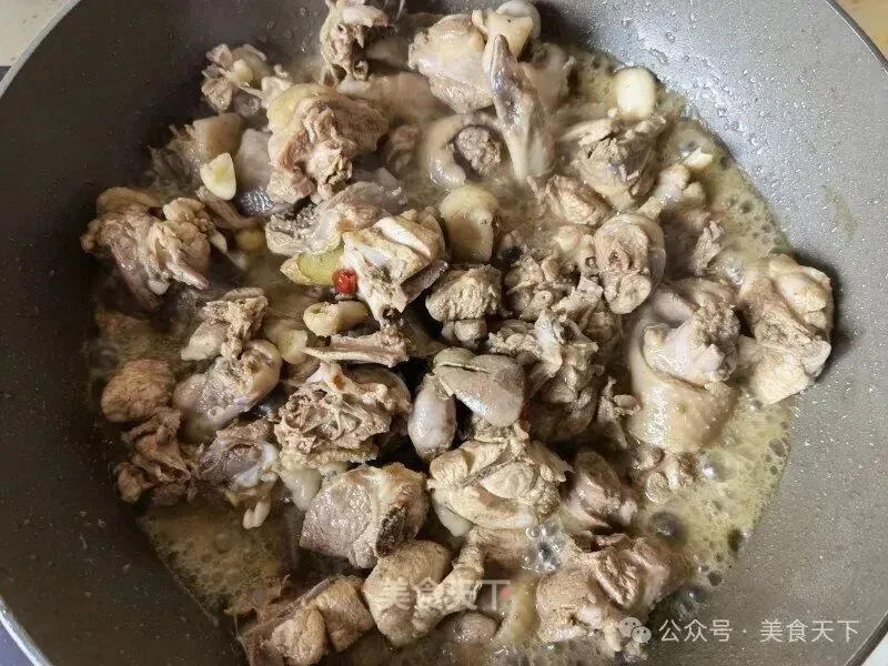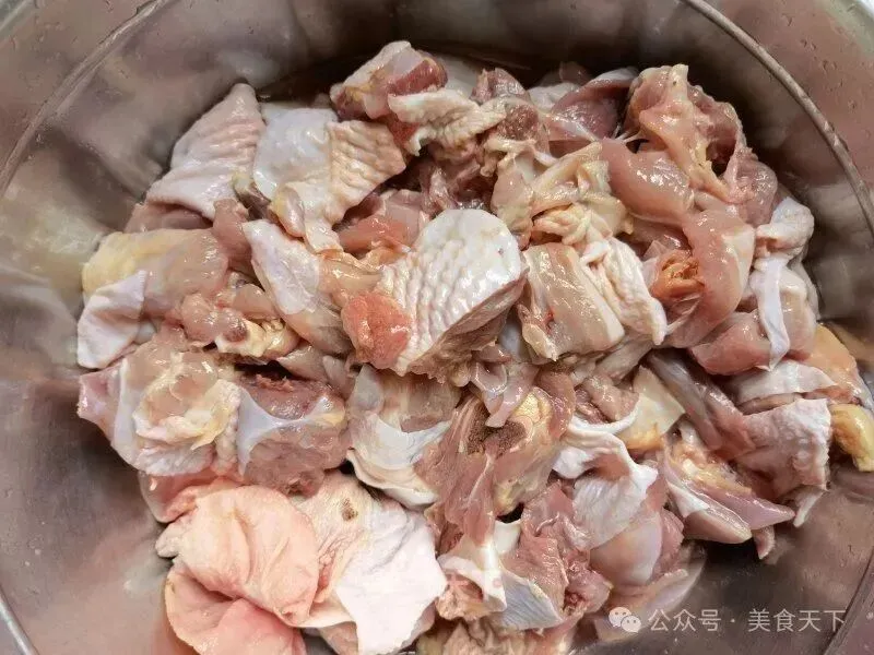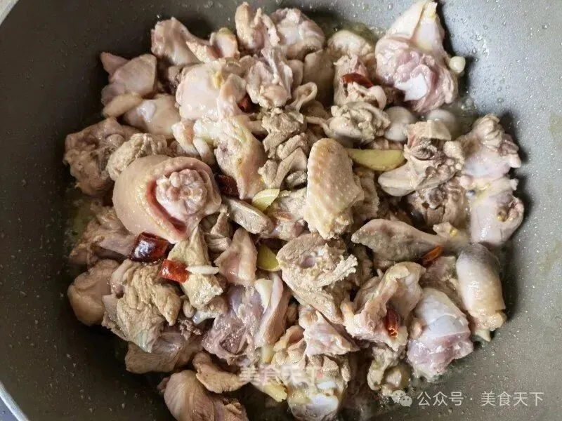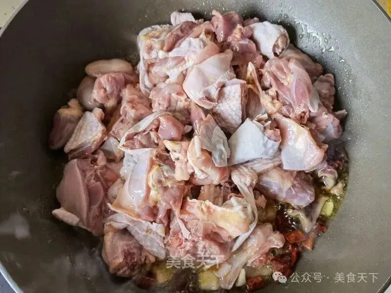 6. 鸡块倒入。