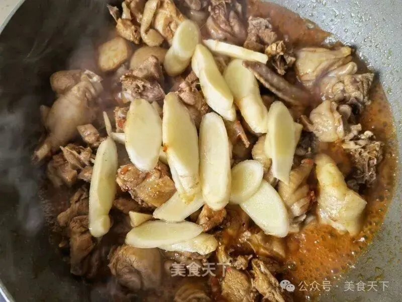 8. 因为鸡块没焯水,不断翻炒,反而炒出很多水份。