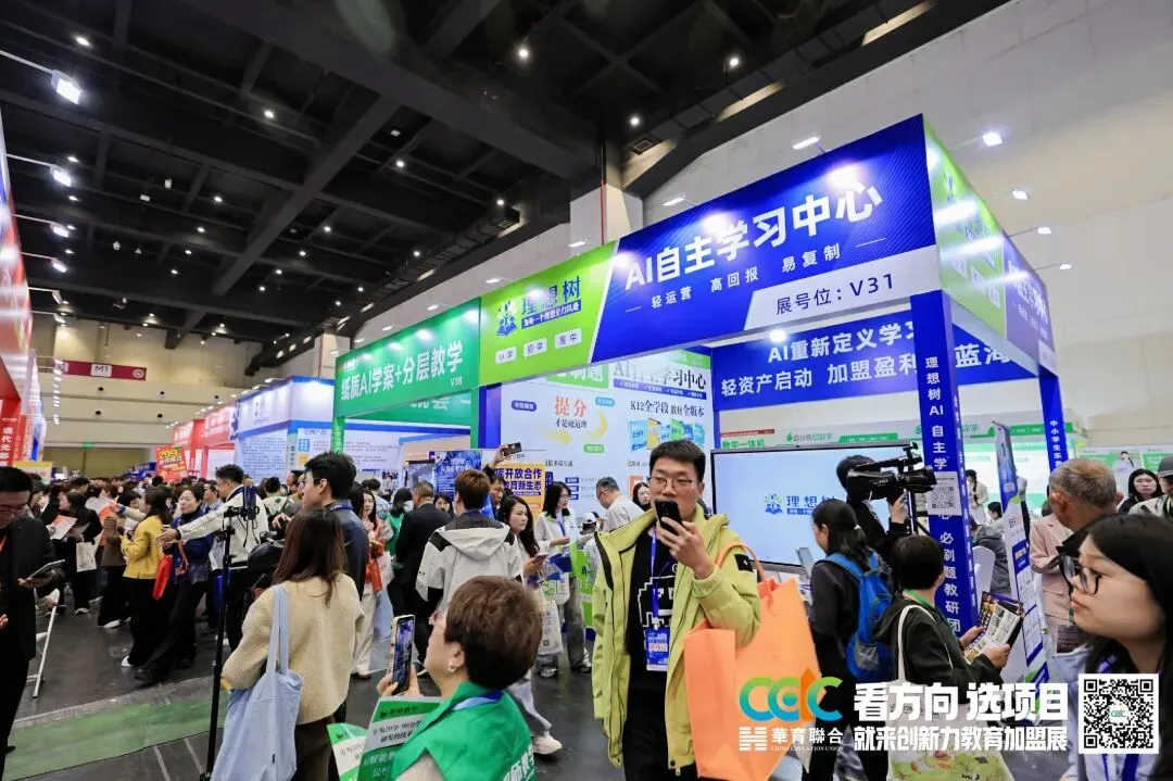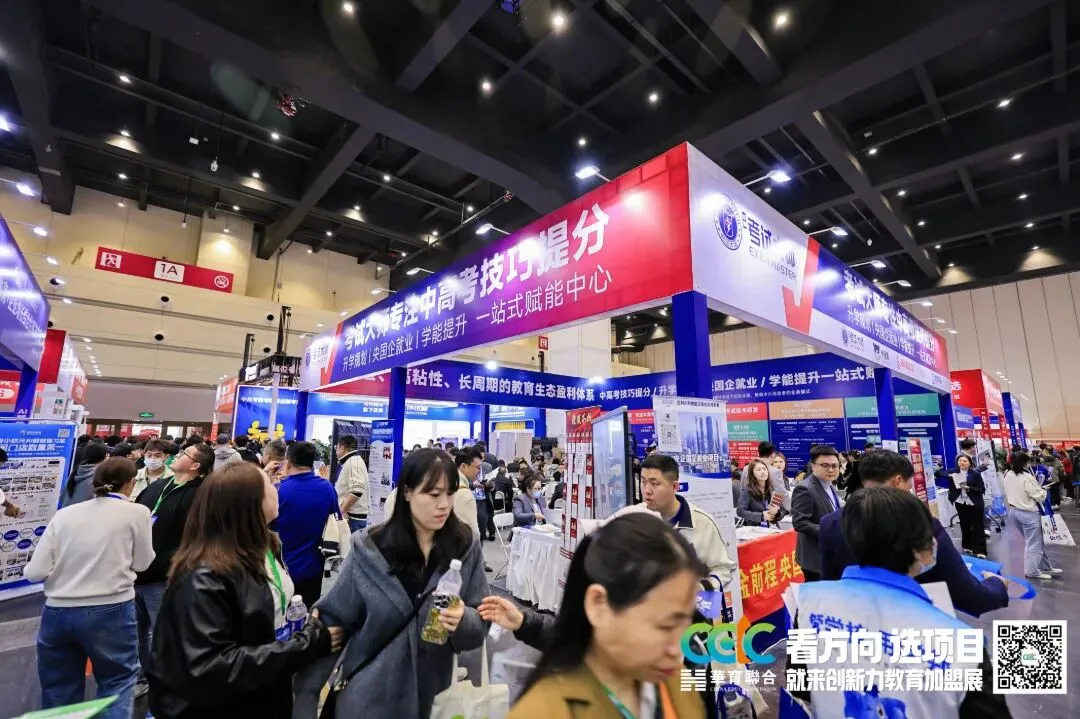 会展联动,双向赋能。会议各论坛思想火花碰撞,展会现场热潮也随之涌动。展馆区域,人头攒动、热火朝天,近万名观众穿梭在200余家优质教育品牌展位之间,一场关于教育未来的实景演练正火热上演。