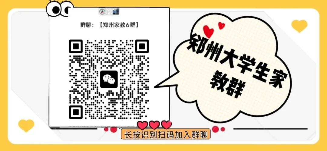 家长请家教请加微信:187 9089 9362(备注:请家教)大学生做家教老师请加微信:bukels121(备注:学校+擅长科目)欢迎各位优秀大学生加入郑州家教兼职群(仅允许老师进群,家长勿进群)↓↓↓