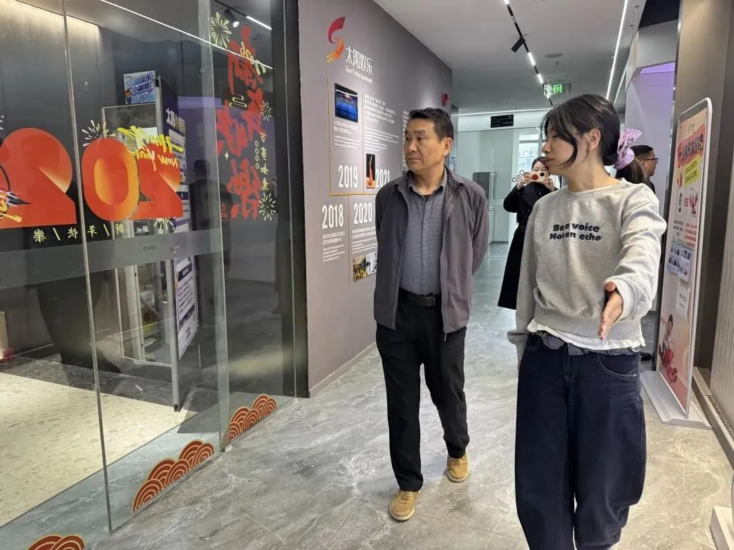 在太阳娱乐河南运营中心负责人的陪同下,教师团队实地参观了中心的创意办公区、多媒体演播室及内容宣发中心,深入了解了公司在大型演艺活动中的视觉统筹流、艺人新媒体IP的孵化机制以及以内容为驱动的数字化营销生态。其快节奏、高标准、极具视觉冲击力的泛娱乐工作模式,给访企交流的教师们带来了全新的行业视角。