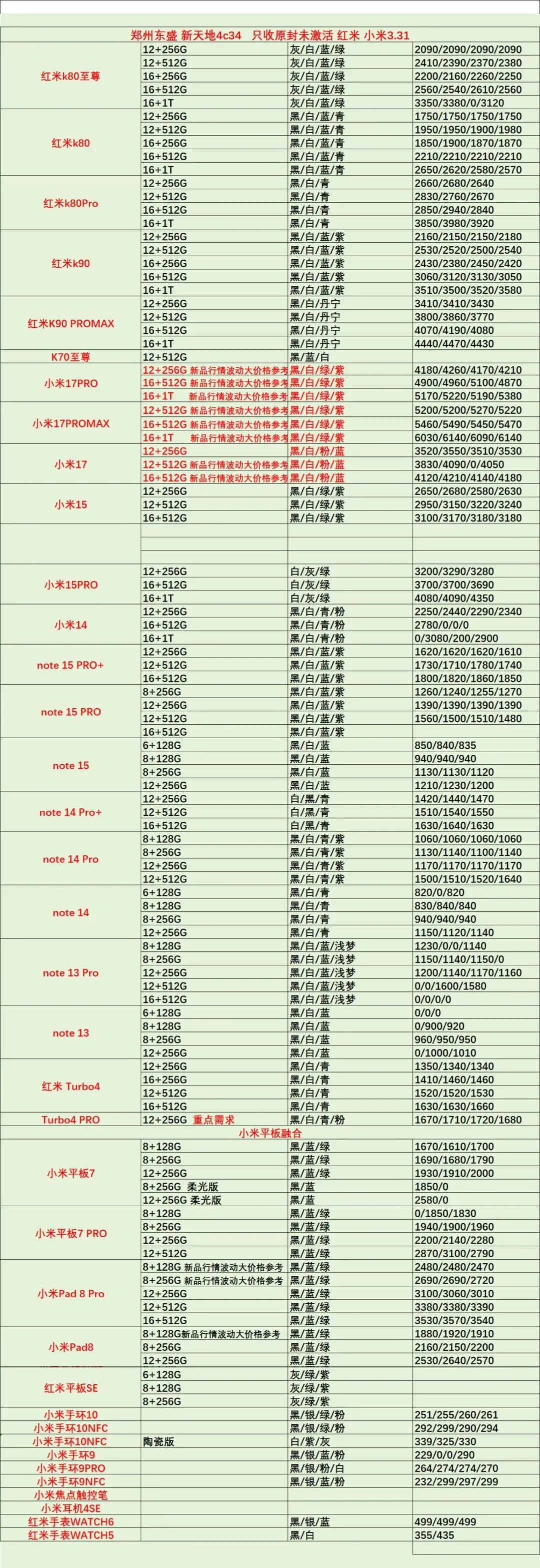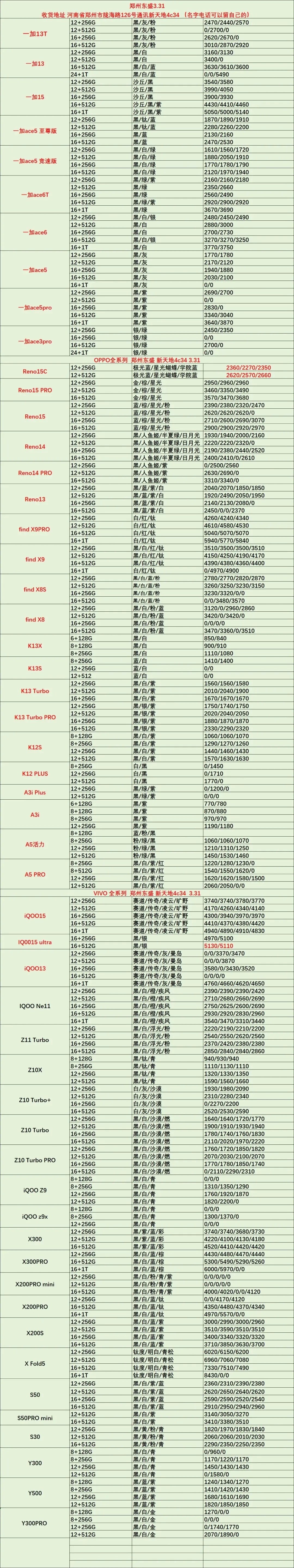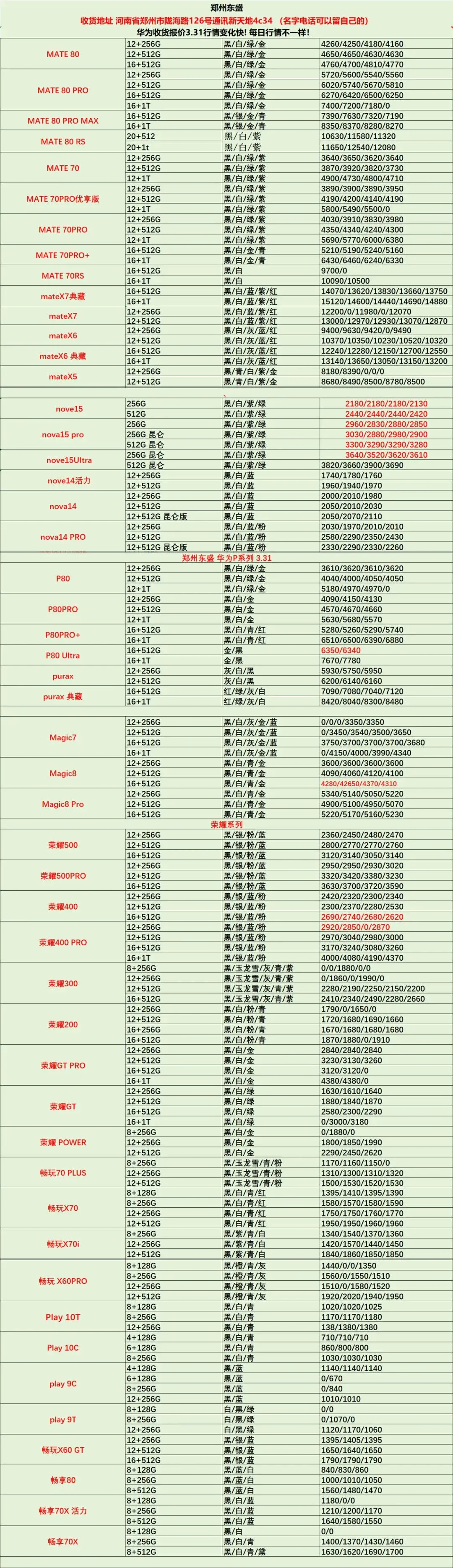 郑州轮聚通讯 2026年3.31日数码报价更新