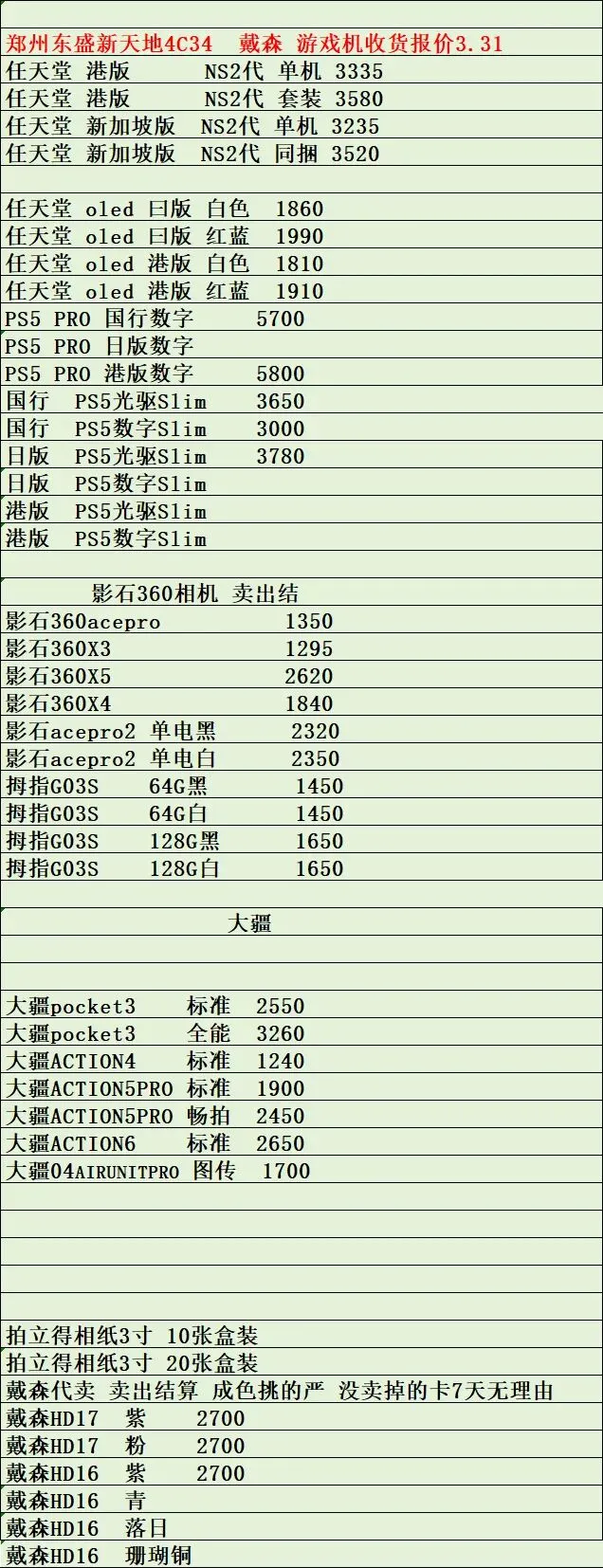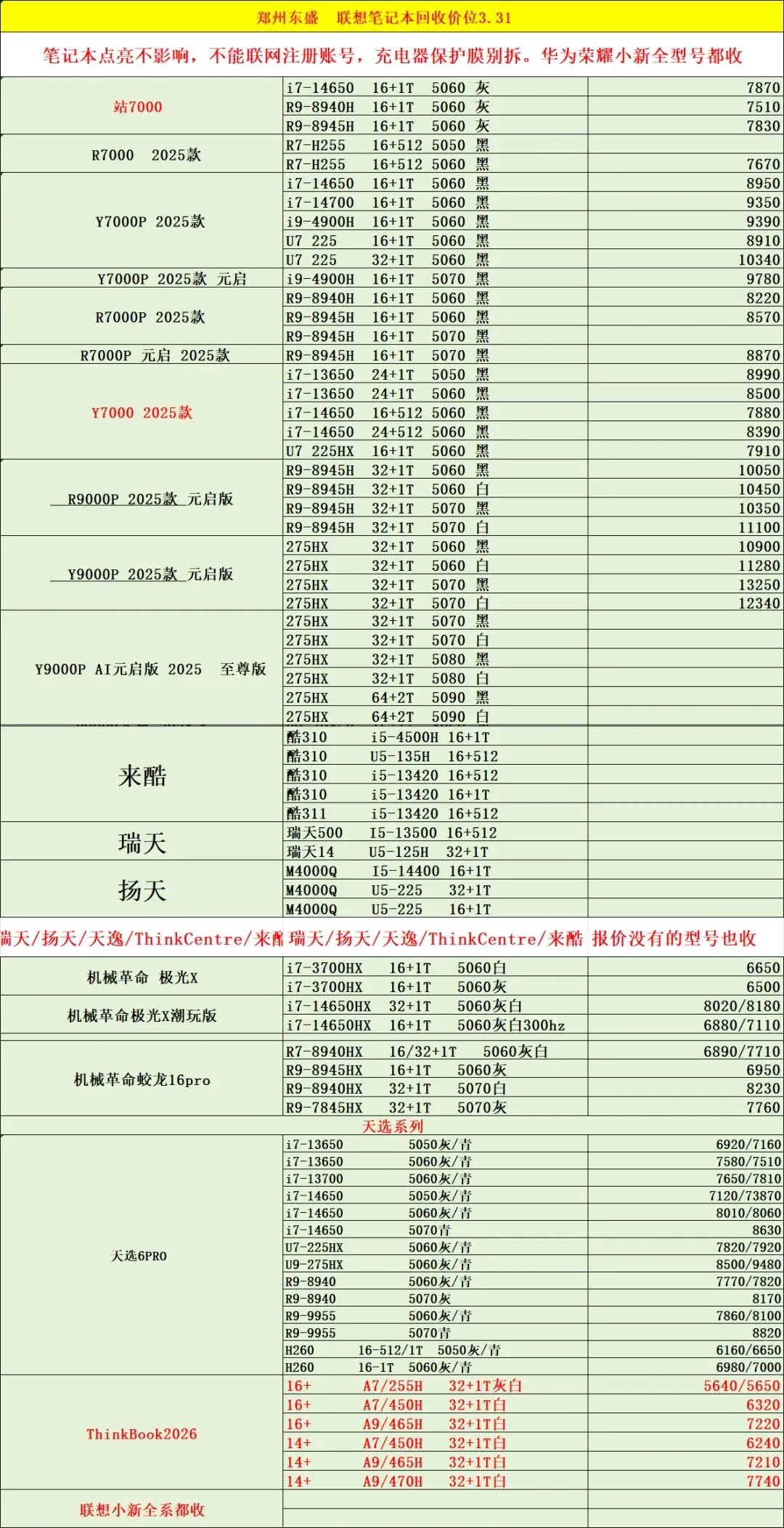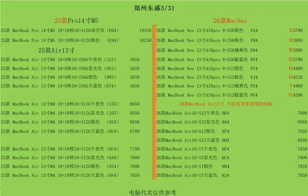 郑州轮聚通讯 2026年3.31日数码报价更新