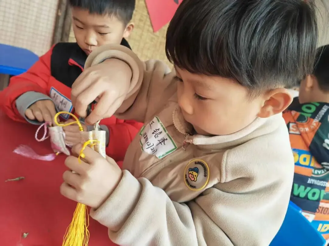 让孩子们动手制作香囊,是一项融合了传统文化、动手实践、审美体验和情感表达的综合性活动,对他们的成长有着多方面的益处,每一步都需要孩子手、眼、脑的协调配合。这能有效锻炼他们的精细动作能力、手眼协调能力和空间想象力。同时,完成一件作品需要专注和耐心,有助于培养孩子的专注力和毅力。