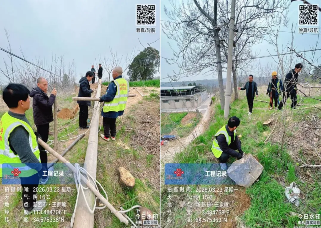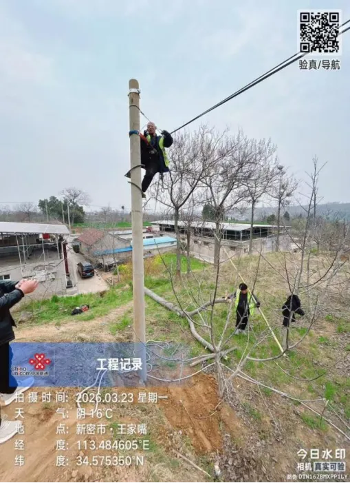 郑州联通讯(新密分公司:石全伟、尚鹏飞)2026年3月20日,新密联通管线网格在例行巡查中发现,位于岳村镇王家嘴村的一处通信杆路因年久老化出现倾斜,杆体底部已出现裂纹,对周边村民出行及通信安全构成潜在威胁。该杆路承载着王家嘴村及周边100余户村民的宽带通信和移网信号覆盖,是村民日常沟通、生产生活的重要信息通道。