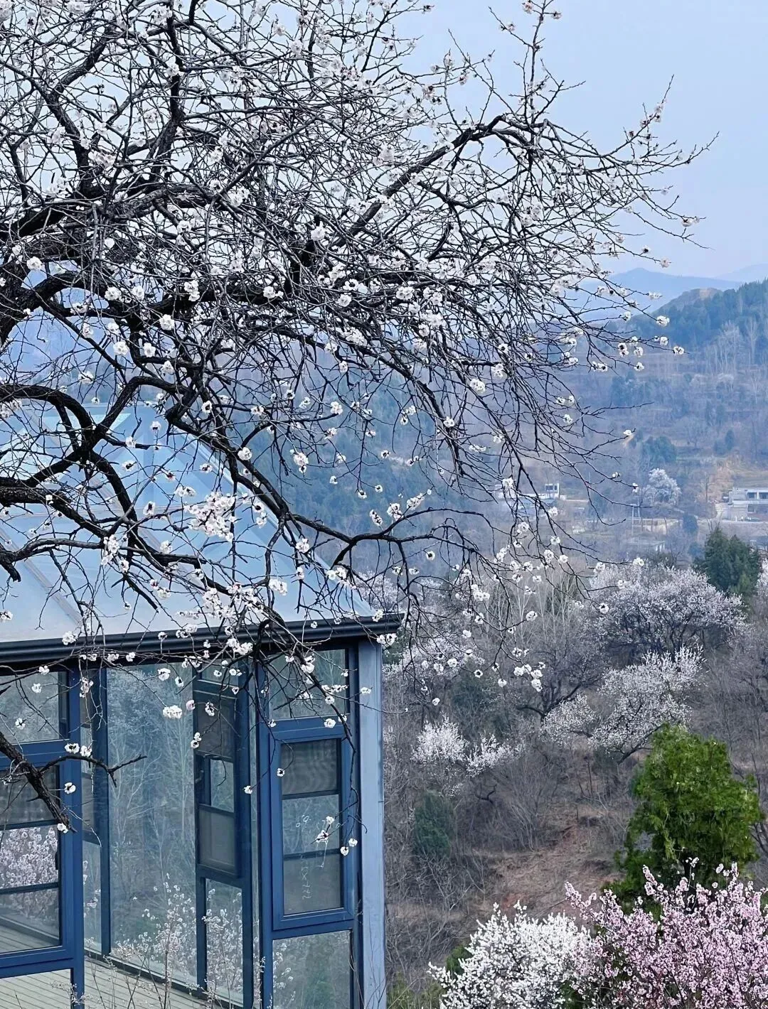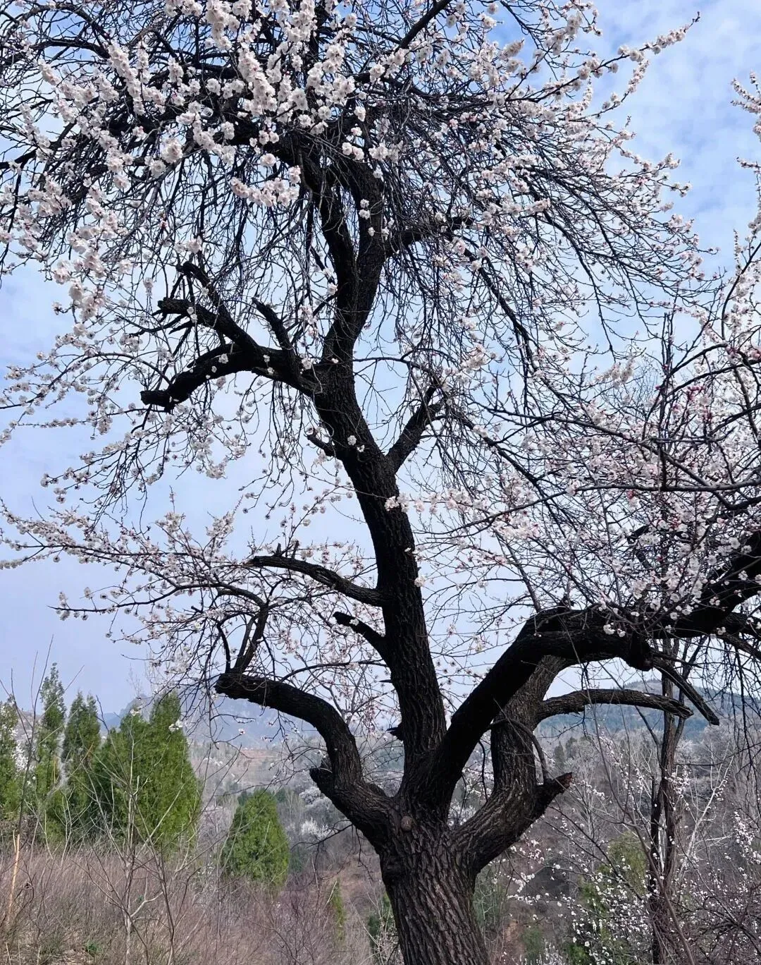 “漫山粉白杏花直接美到失语。”