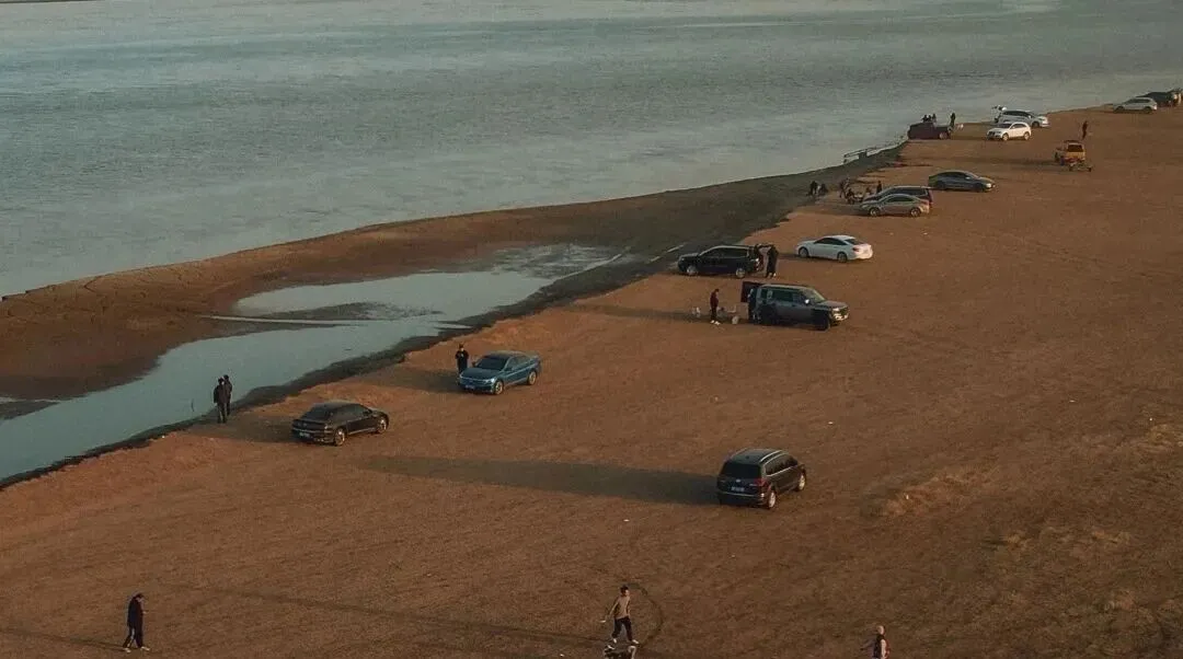 想找个开阔地,看一场壮阔的日落,可以来中牟的南仁村。这里是黄河边的一片滩涂,枯黄的草地、悠闲的牛群,有几分**“河南版阿勒泰”的苍茫感**。