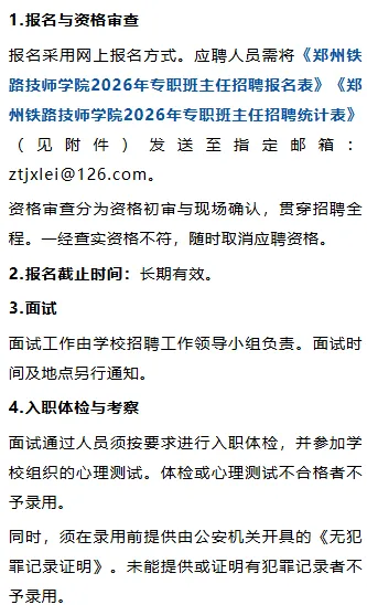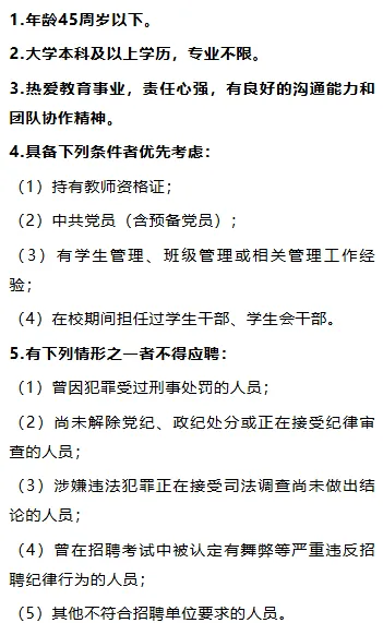 2、我们转推此文,旨在为广大求职者提供信息来源,如需删除,请联系小编。3、请各位求职者提高警惕,凡涉及收取各种费用或几乎不面试就给出录取通知,且到外地就职的招聘等,务必仔细辨别,谨防上当受骗!为进一步加强学生管理工作,根据我校学生处队伍建设发展需要,现面向社会公开招聘班主任。