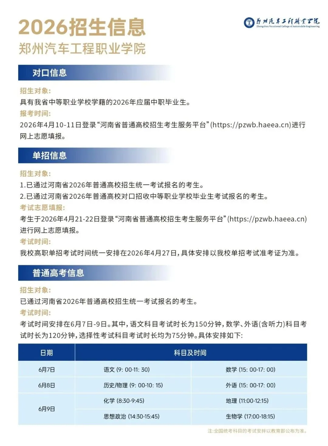 重磅发布 || 郑州汽车工程职业学院2026年招生简章