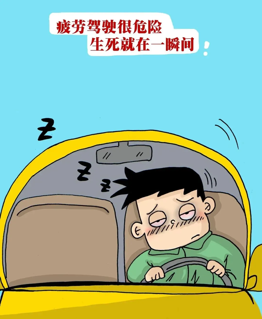✘ 驾驶人处于轻微疲劳时,会出现换挡不及时、不准确;✘ 驾驶人处于中度疲劳时,操作动作呆滞,有时甚至会忘记操作;✘ 驾驶人处于重度疲劳时,往往会下意识操作或出现短时间睡眠现象,严重时会失去对车辆的控制能力。✘ 驾驶人疲劳时,会出现视线模糊、腰酸背疼、动作呆板、手脚发胀或有精力不集中、反应迟钝、思考不周全、精神涣散、焦虑、急躁等现象。驾驶人每天保证7至8小时睡眠,睡前2小时内不饮食,睡前1小时内不多饮水、不做过度脑力劳动,养成按时就寝和良好睡姿。