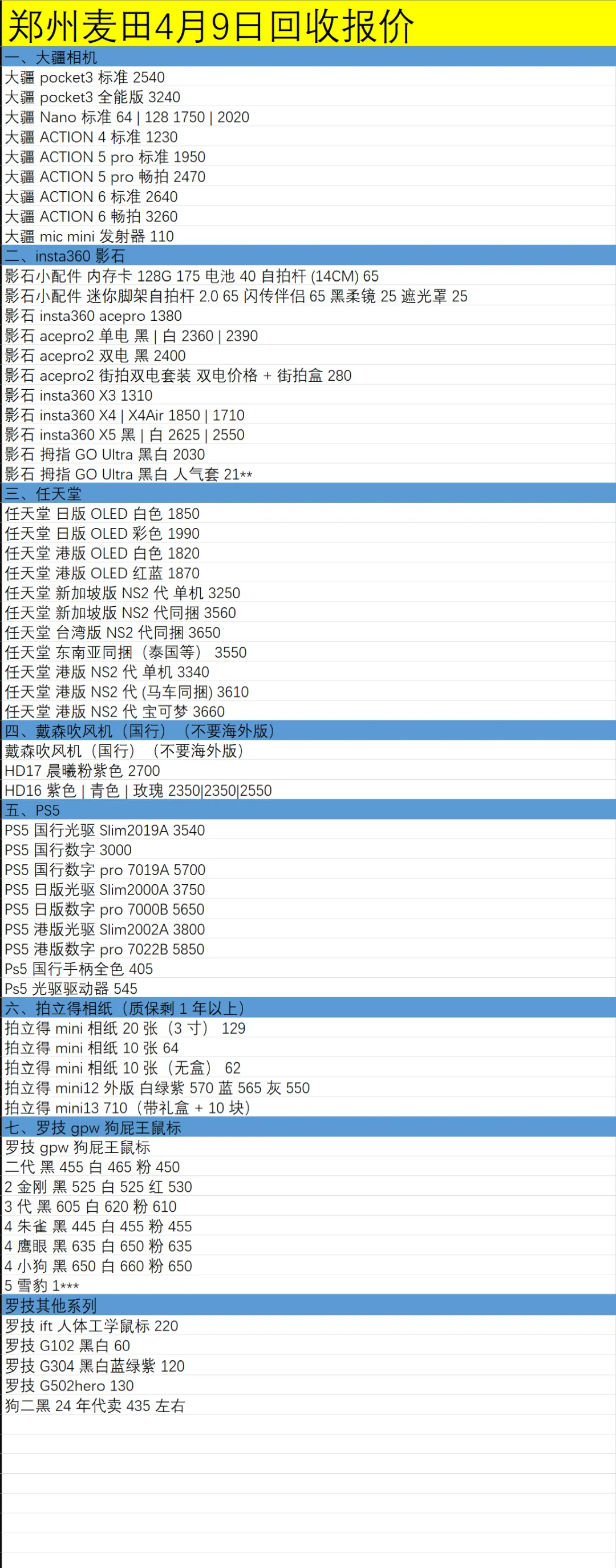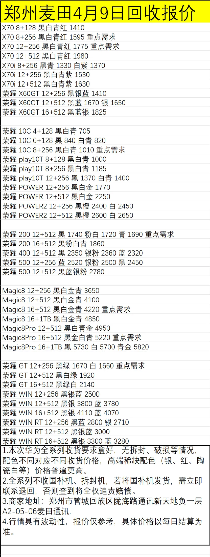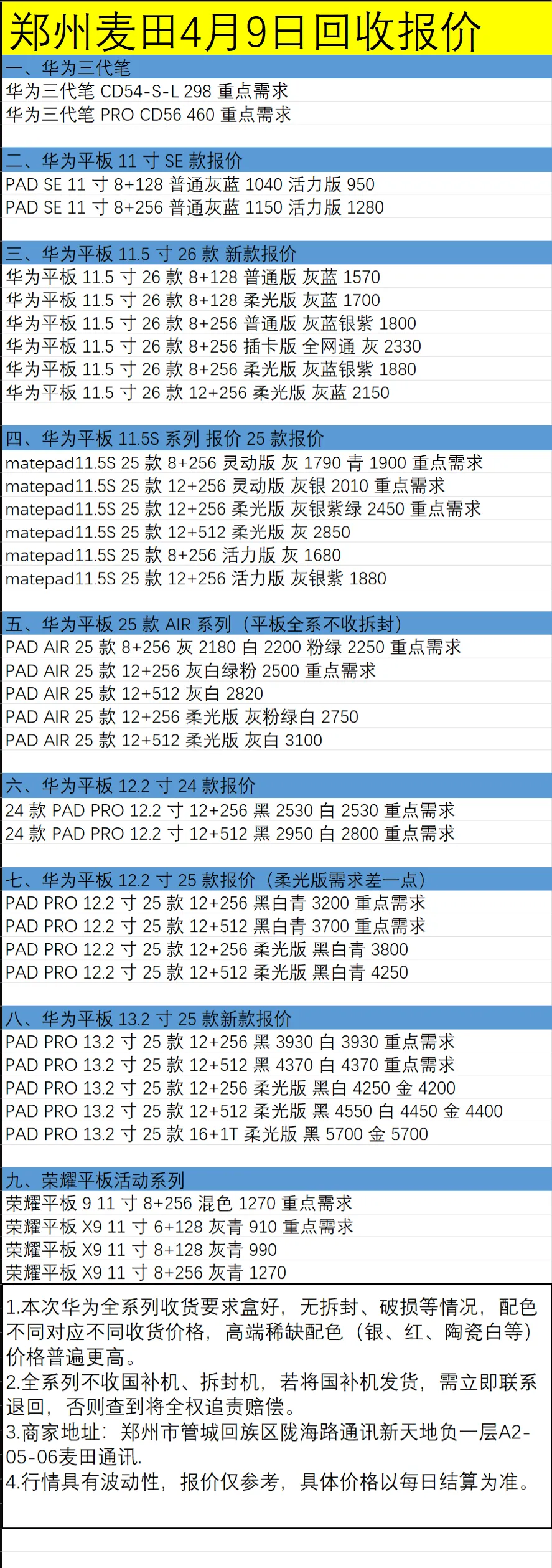 当前位置:首页>郑州>郑州新天地麦田通讯4月9日数码报价
