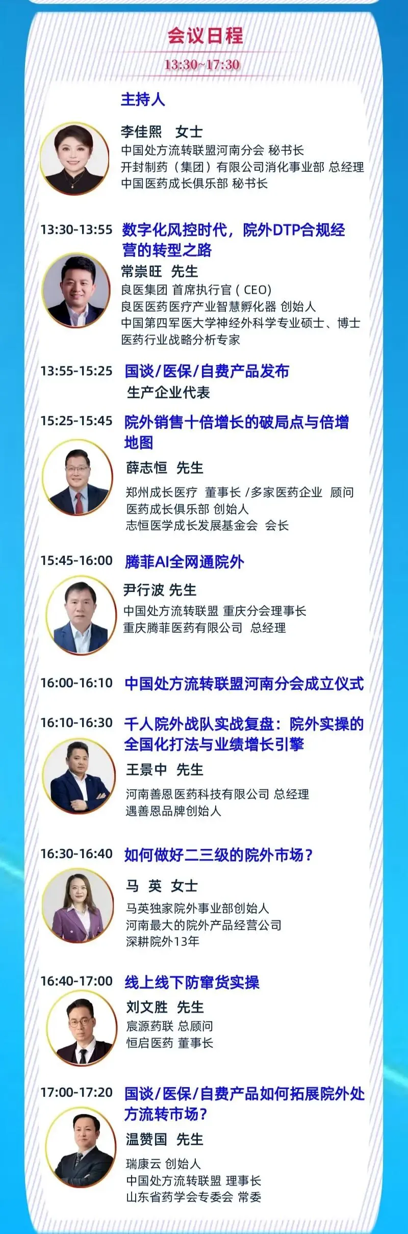 河南作为医药消费大省,院外处方流转市场潜力巨大。本次会议落地郑州,深度聚焦河南本土市场,帮助企业精准对接河南区域代理商、药房、医院资源,把握 “双通道”、医保统筹等政策红利,快速抢占河南院外市场份额。