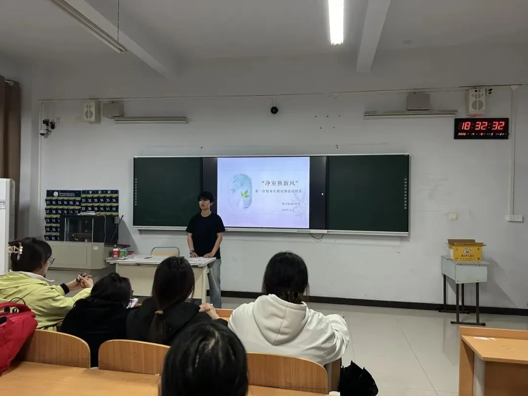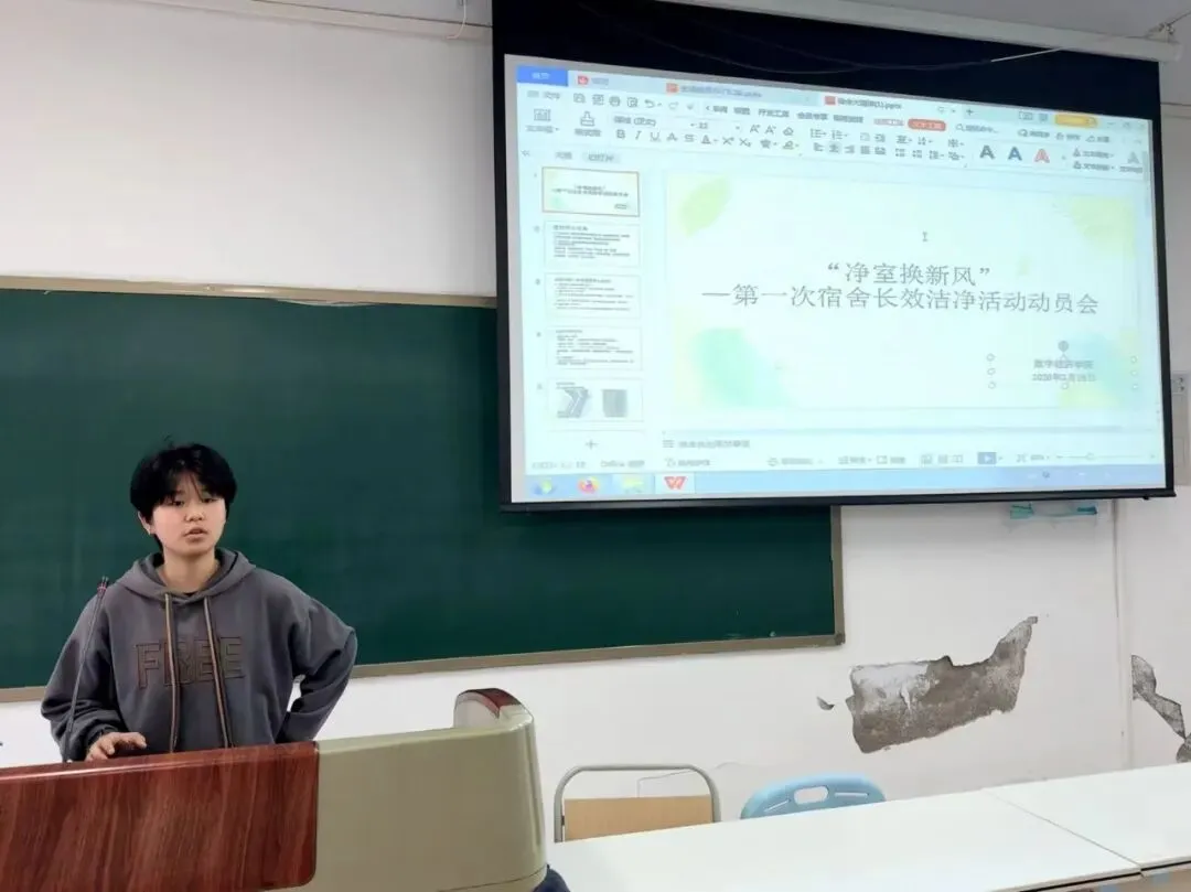 3月26日,学院依托辅导员队伍与学生干部队伍开展活动预热与动员工作。动员会上,李书舟老师详细明确活动时间及卫生打扫标准细则,要求各班生活委员将活动要求“点对点”传达至每间宿舍。同时,结合辅导员下沉学生公寓的工作机制,学院对宿舍清洁整改成效进行全程跟踪与督促。