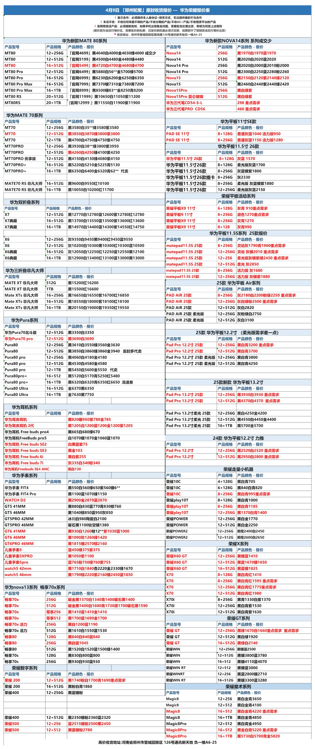 郑州通讯新天地轮聚通讯 2026年4.9日数码报价更新
