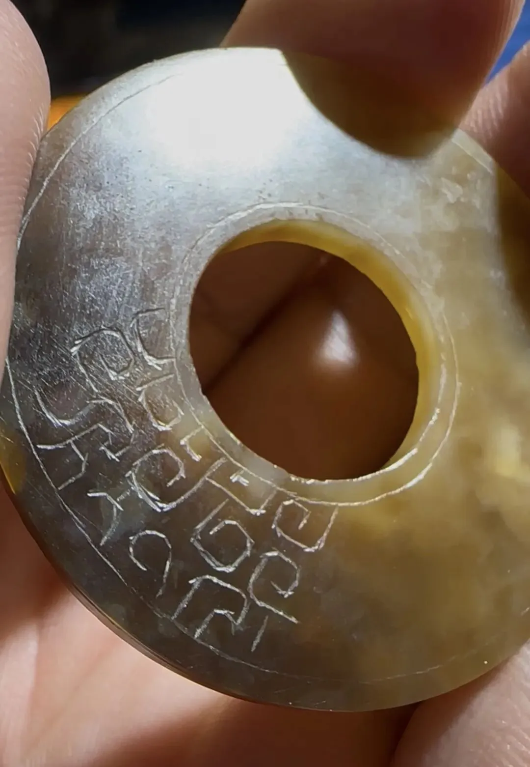 第二件是汉代剑珌,大的见的不少,小型的还是真少见!老熟的料子部分已盘红!第三件:汉代游丝毛雕玉壁,生坑已盘出味道,还是非常漂亮的!第四件:老黄杨木象棋一套但是缺一颗,要不然价格不至于太低,古人智慧值得惊叹!问藏友们为啥中间穿孔?第一黄杨容易裂,中间穿孔可以破坏张力减少裂痕,其次方便携带,随时随地可以展开棋盘进行切磋!我逛交流会比较磨蹭也就是慢吞吞的!逛到9层都快十点半了,地铁十一点停运,我只好去赶地铁了,反正逛的这几层价格没谈成的已经做好标记!