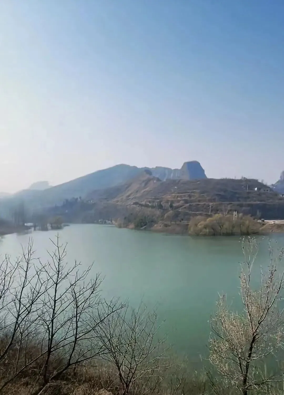 站在大坝上,视野一下子打开——眼前是碧波荡漾的水面,两边是连绵的青山,春风一吹,那种开阔感一下子就来了。