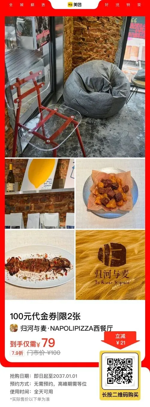 郑州的牛排控注意啦!🔥归河与麦·NAPOLIPIZZA西餐厅放大招,79元抢原价100元代金券~