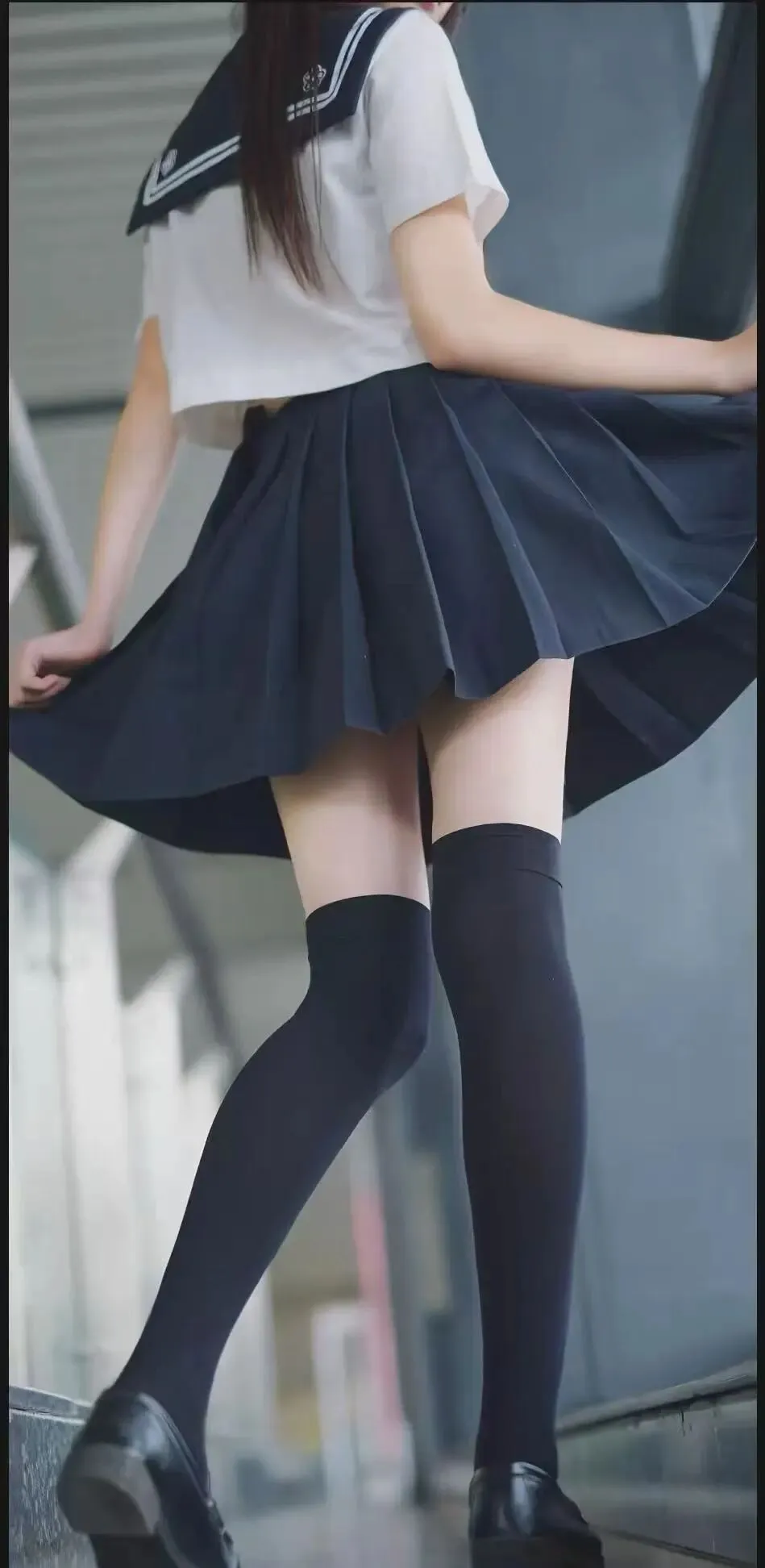 黑长直长发垂在水手服领后,百褶裙被轻轻提起,弧度在阳光下划出绝美的线条,黑丝长袜裹着纤细的双腿,小皮鞋踩在台阶上的瞬间,青春感直接拉满。回头的刹那,甜妹的灵动与纯欲撞个满怀,像极了校园里让你心动的初恋,一抬眼就撞进心巴。不是那种僵硬的塑料感,是从发丝到裙摆都透着真实感的细腻,连百褶裙的褶皱、丝袜的贴合度都完美还原,就像真的有个JK少女在等你,一转身就扑进怀里撒娇,氛围感直接封神。