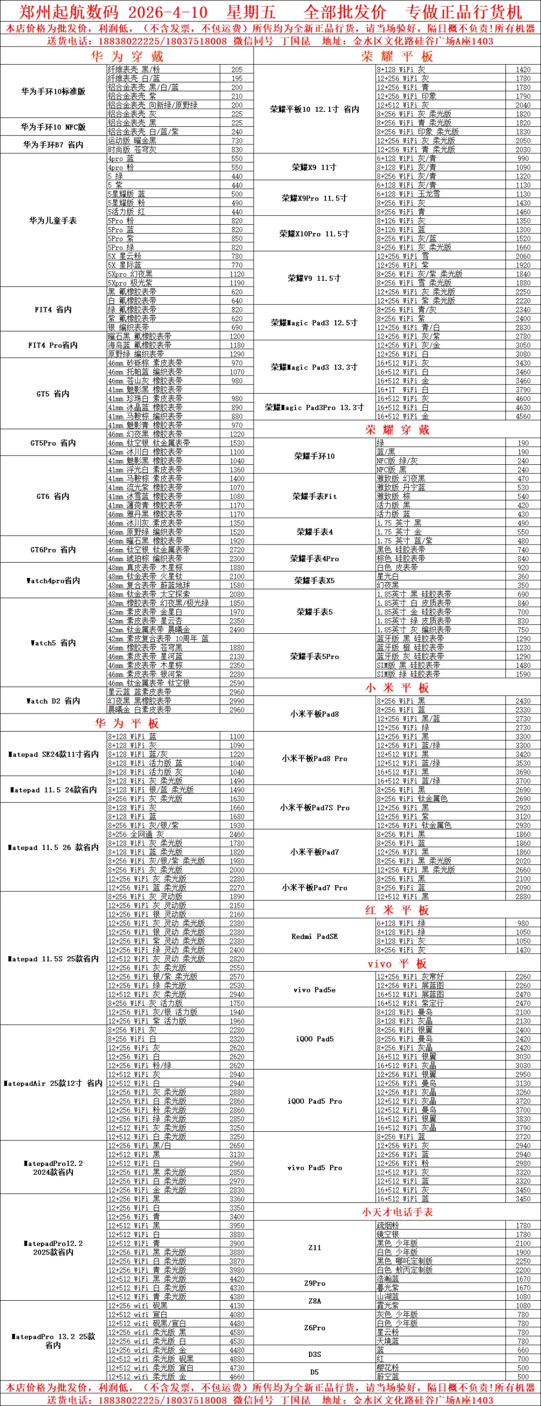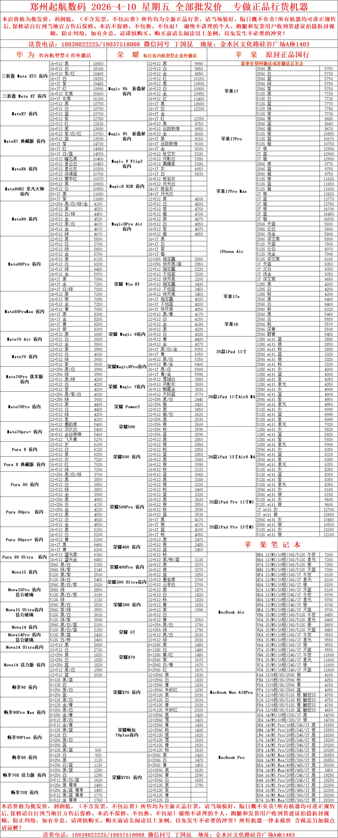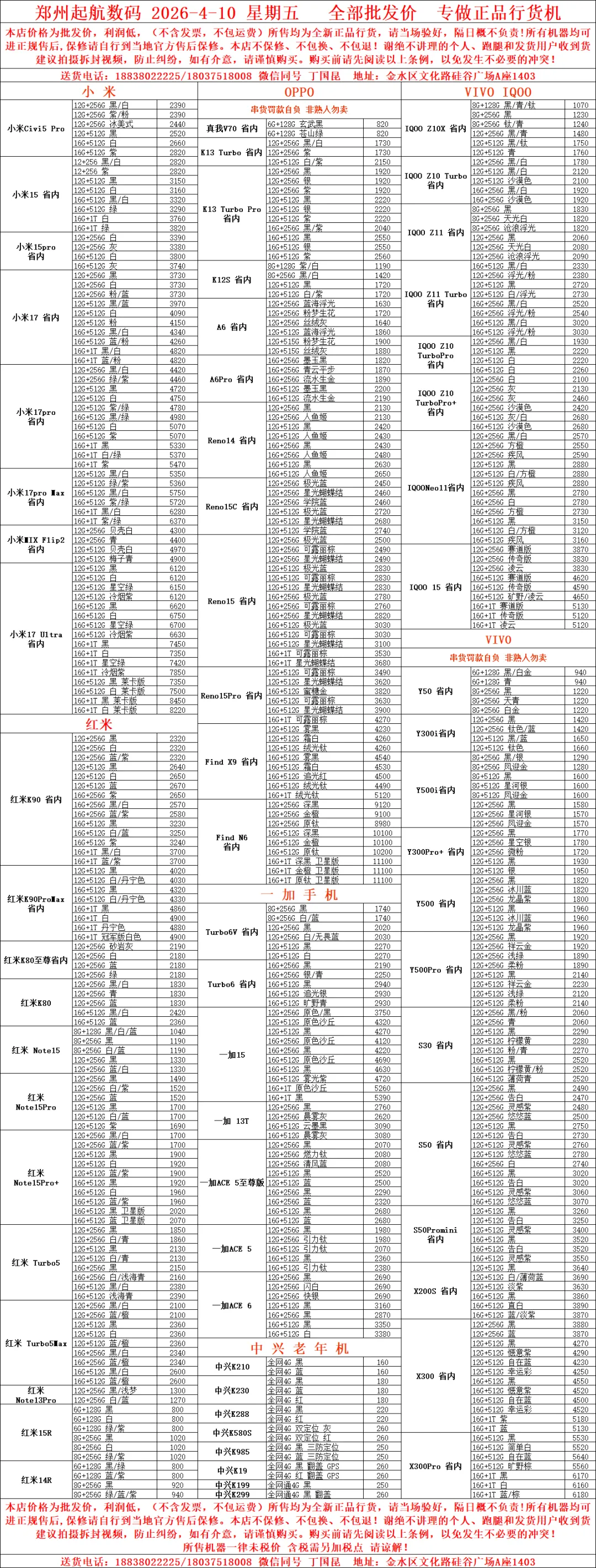 每天手机最新行情 请关注微信每日推送微信公众号:郑州起航数码公司地址:郑州市金水区文化路82号硅谷广场A座1403