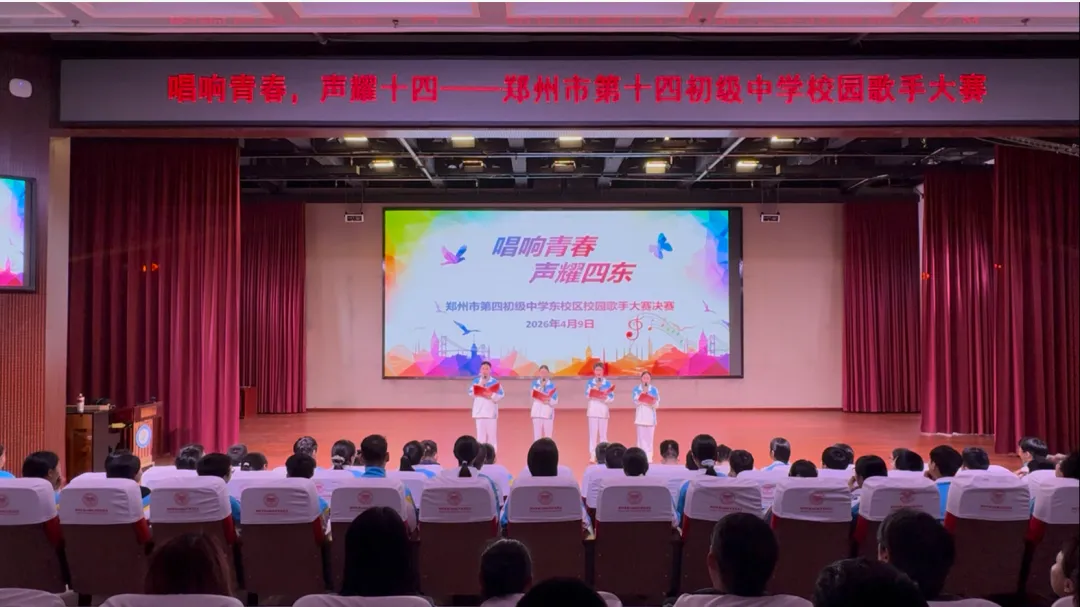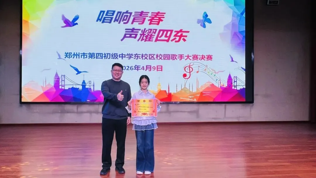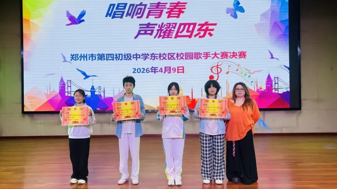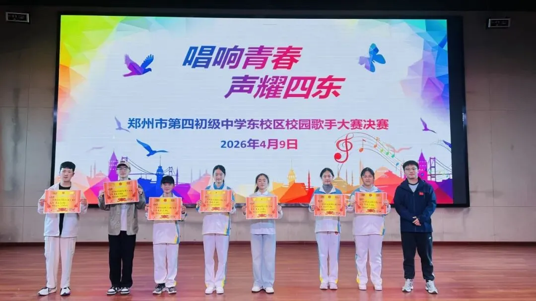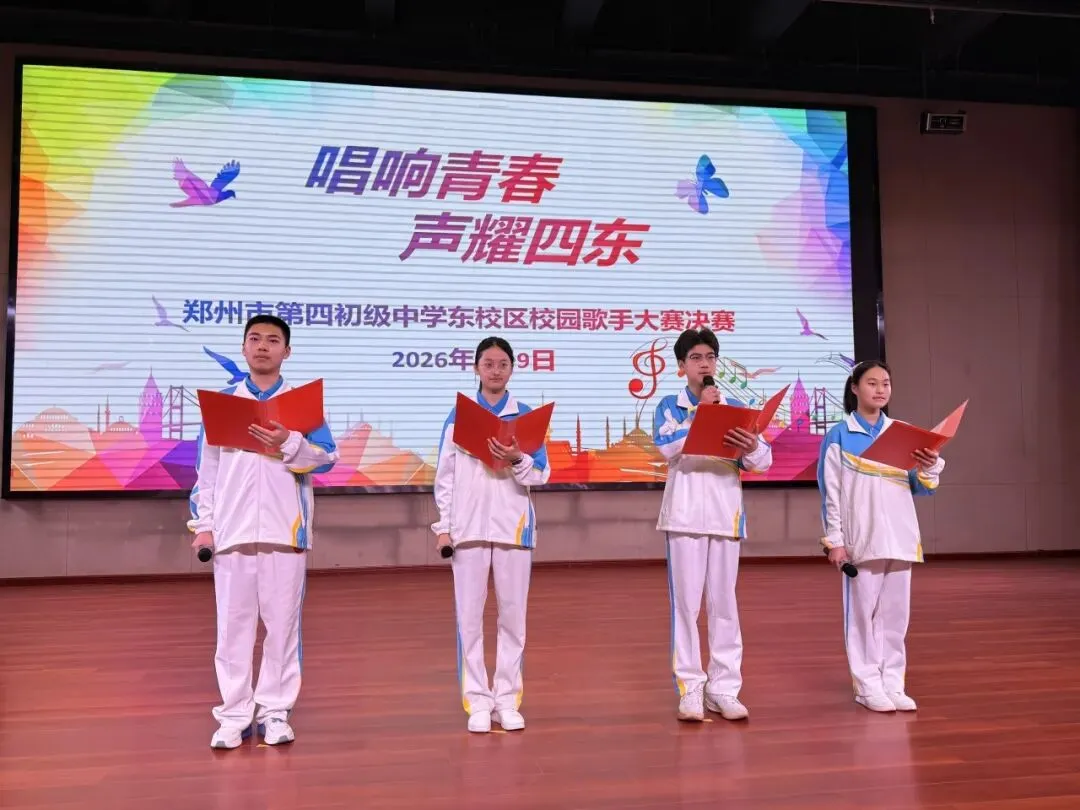 青春逢盛世,放歌正当时。为进一步丰富校园文化生活,搭建学生展示自我、绽放风采的舞台,营造积极向上、活力满满的校园氛围,2026年4月9日,郑州市第四初级中学东校区第二届校园歌手大赛决赛圆满举办。