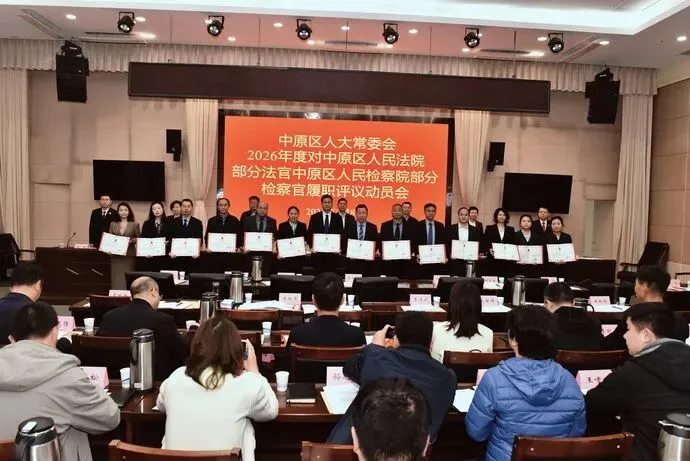 会上宣读了《中原区人大常委会2026年度对中原区人民法院部分法官中原区人民检察院部分检察官履职评议的工作方案》和《中原区人大常委会2026年度法官检察官履职评议被评议对象名单》。2024年,中原区作为郑州市人大常委会确定的全市唯一试点城区以来,已连续两年组织开展“两官”履职评议试点工作。根据市人大常委会试点工作要求,履职评议试点将连续开展三年,对入额一年以上的员额法官、员额检察官进行履职评议全覆盖。2026年将完成对19名员额法官、8名员额检察官的履职评议。